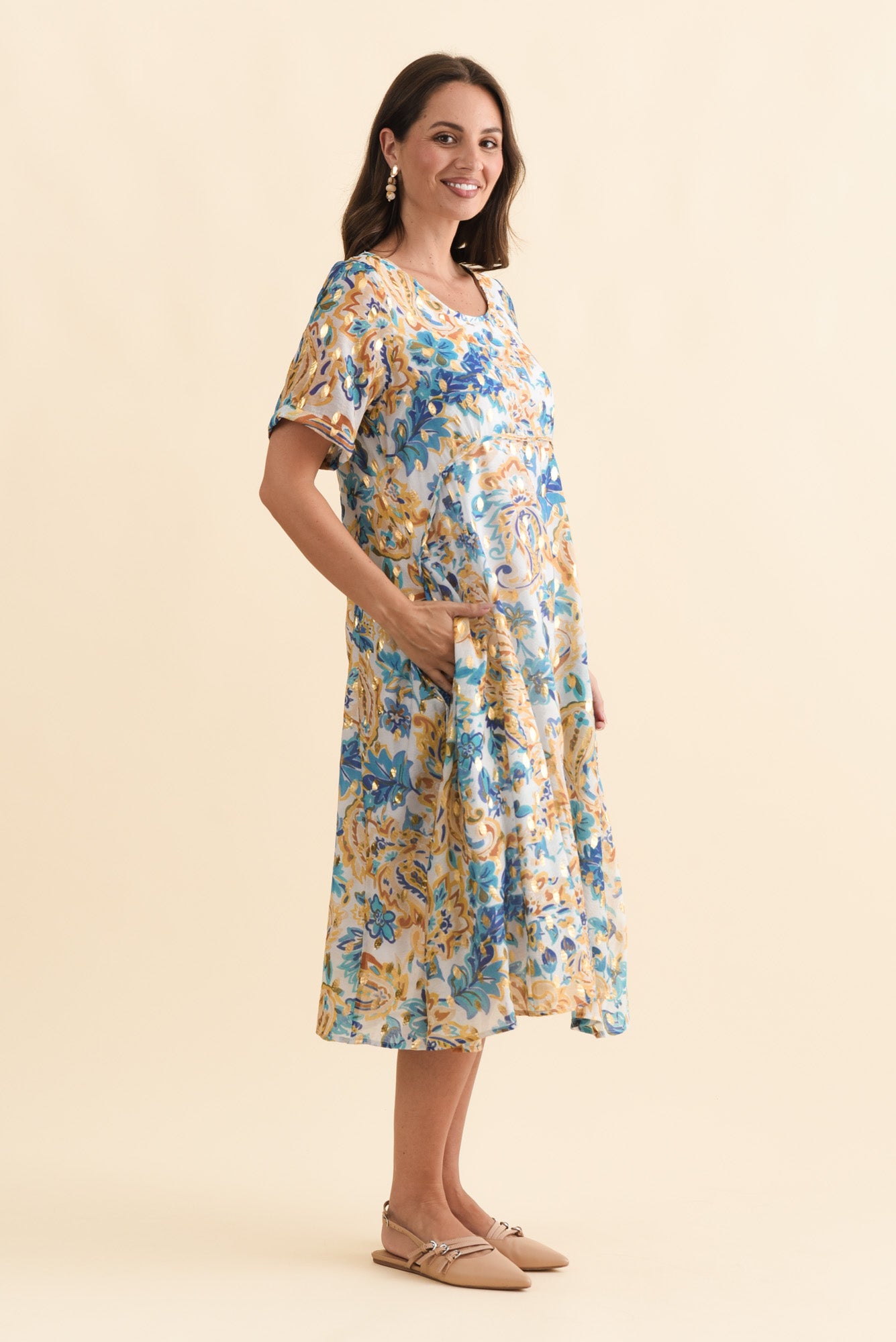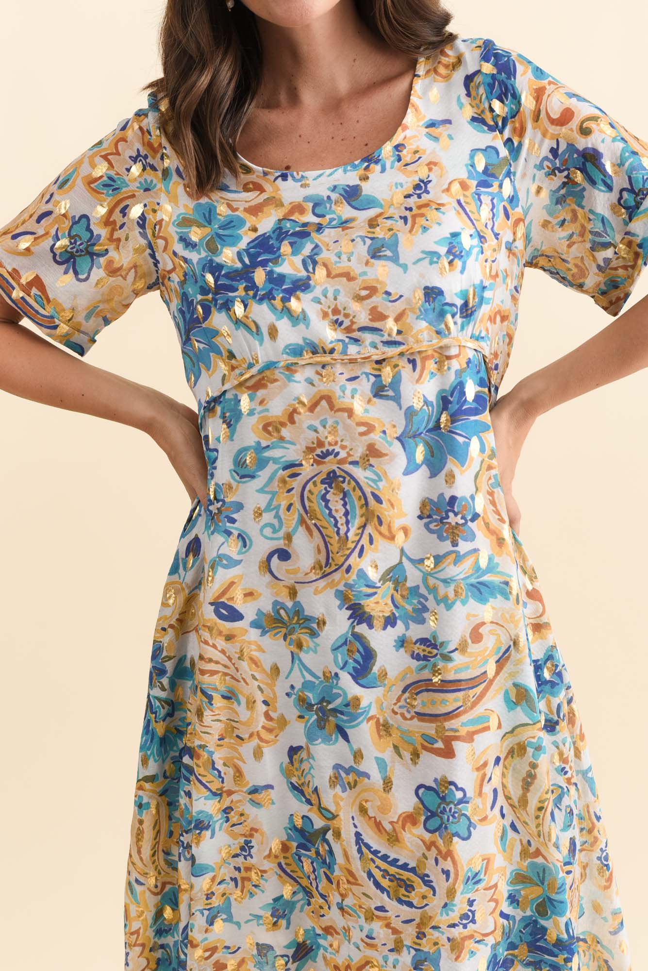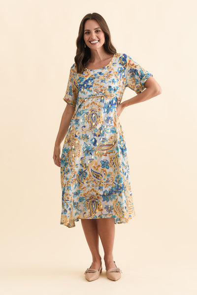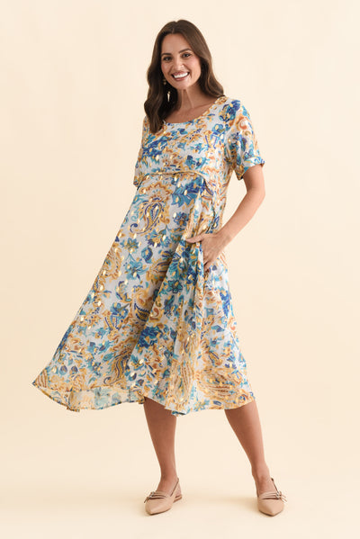 Darling Blue Paisley Foil Crescent Dress