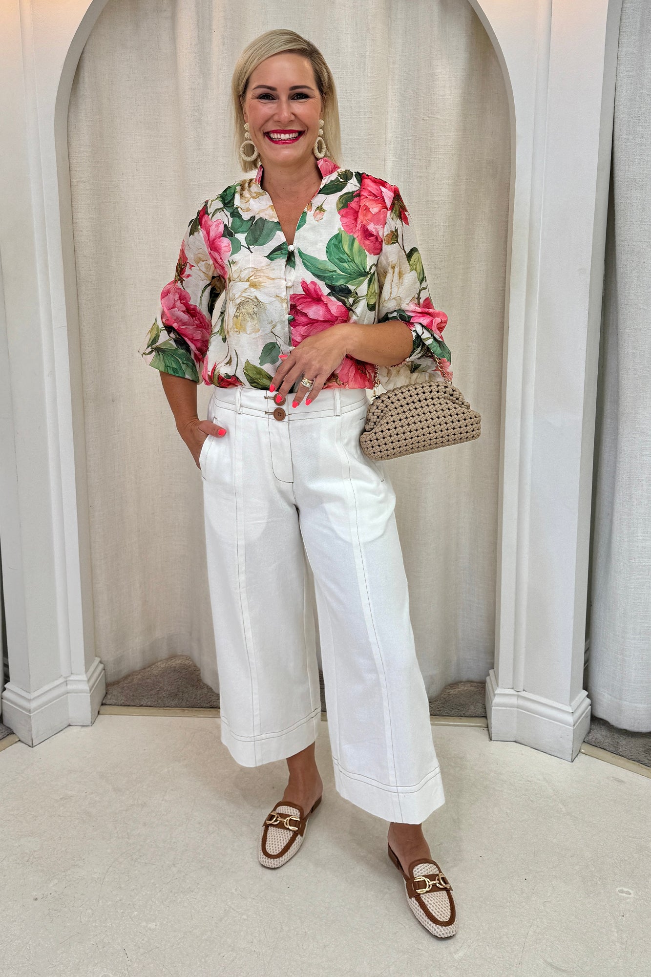 Delaney Cream Botanical Puff Sleeve Blouse