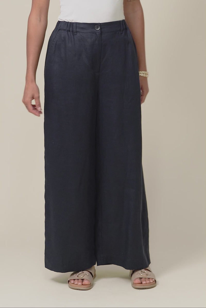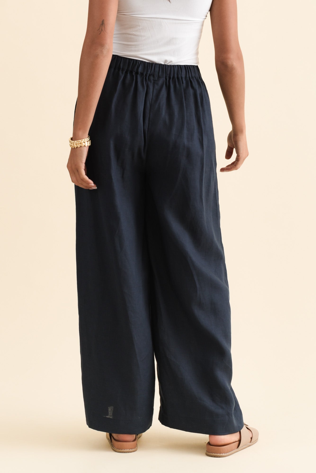 DELSEY NAVY LINEN WIDE LEG PANTS