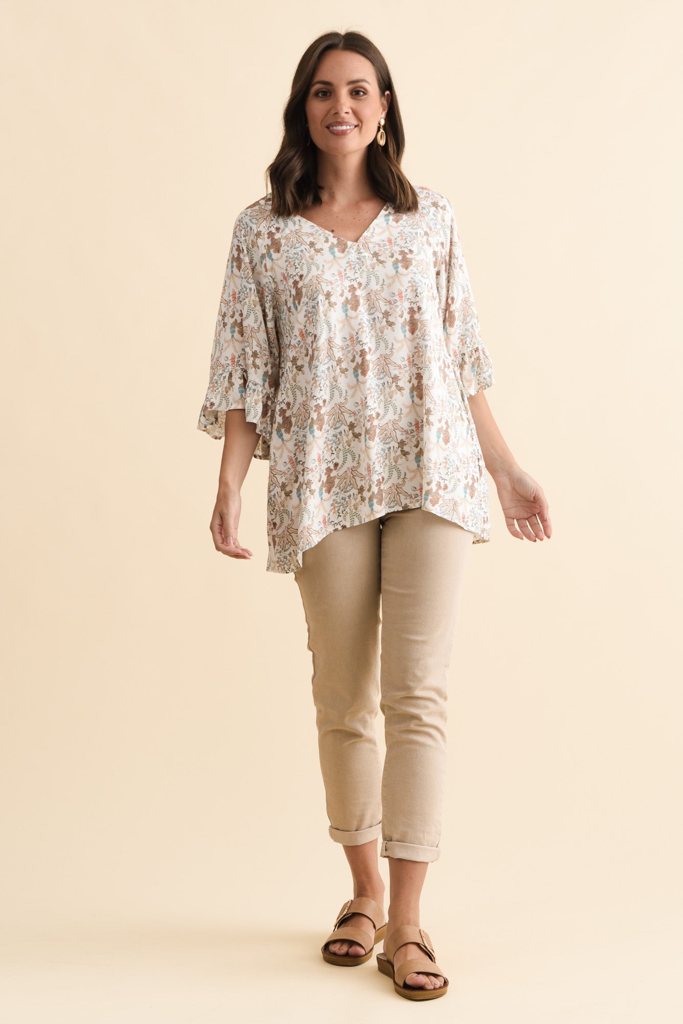 Diona Cream Garden Frill Sleeve Top