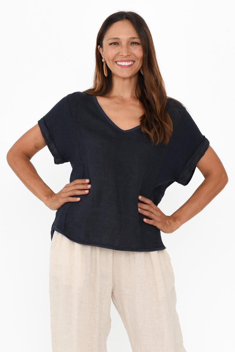 DORIAN NAVY LINEN COTTON TOP
