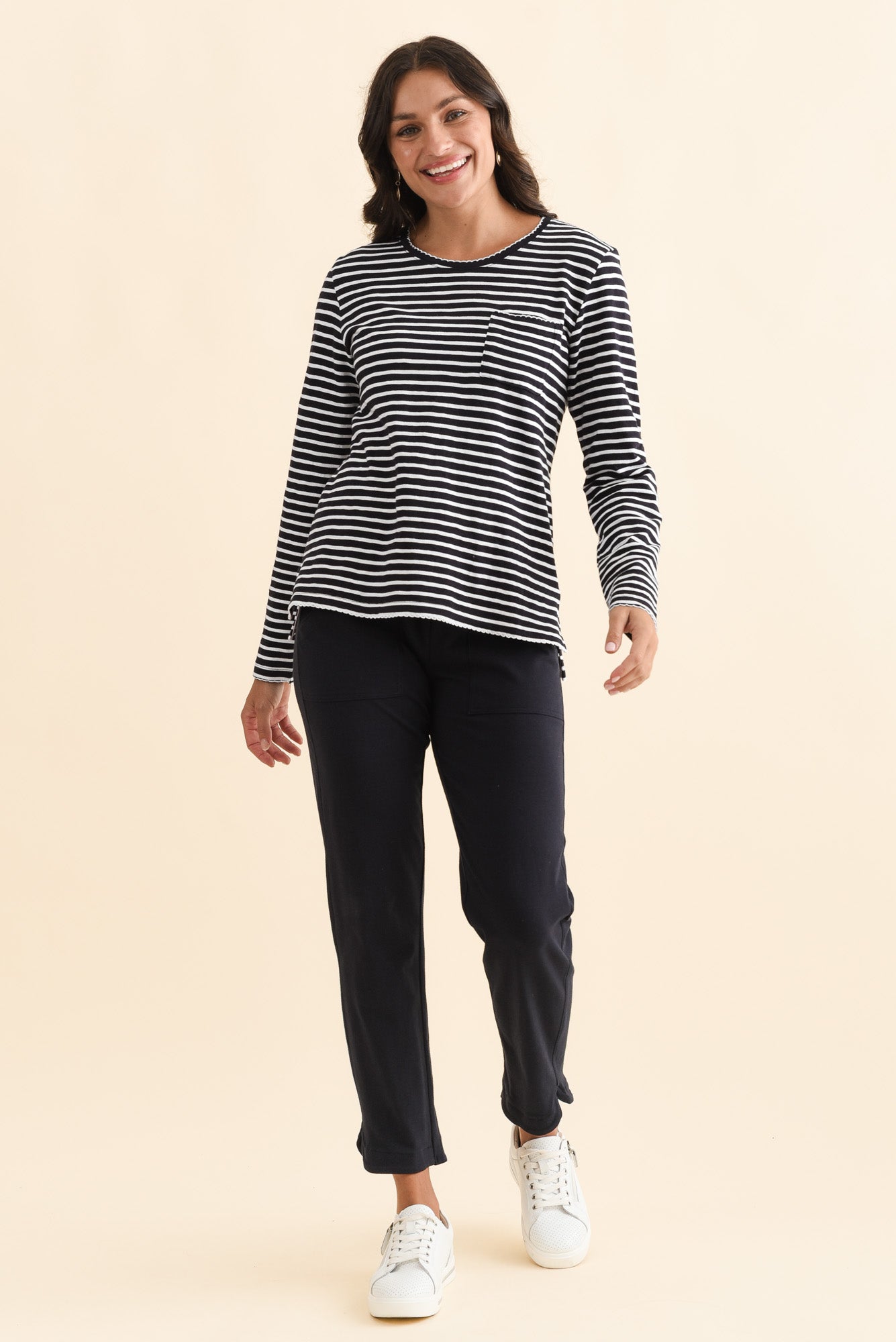 Drea Navy Stripe Cotton Long Sleeve Tee