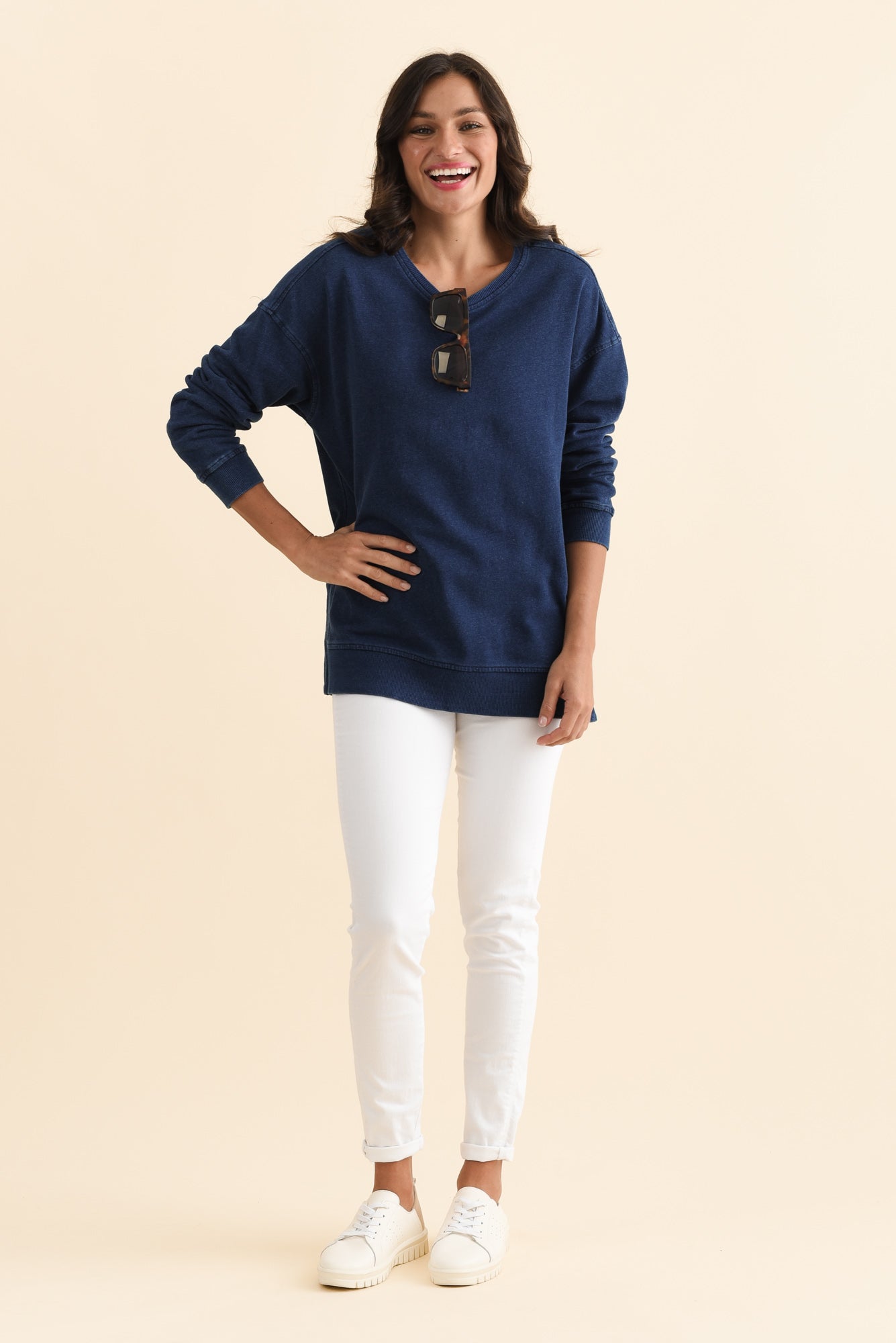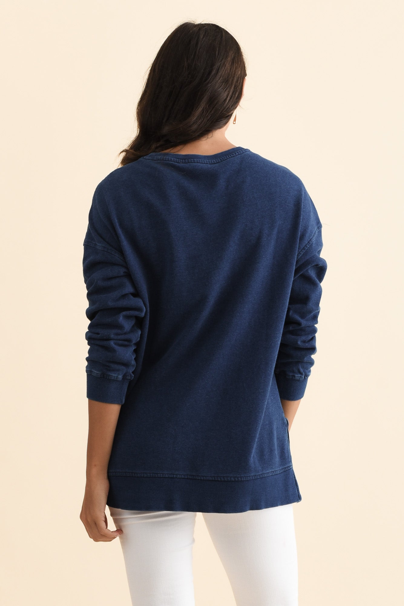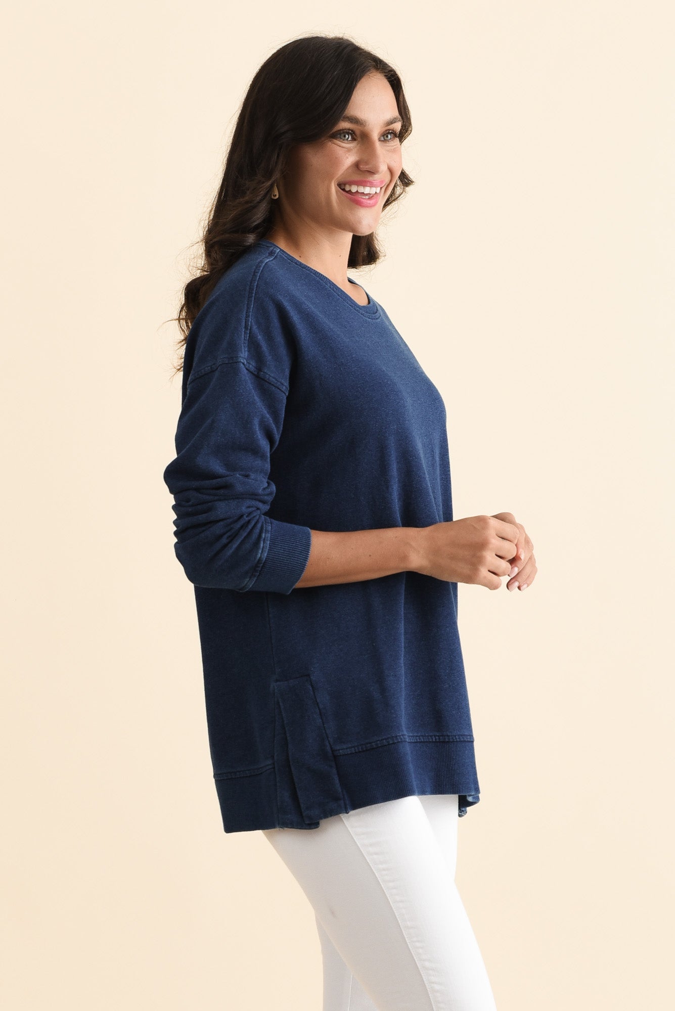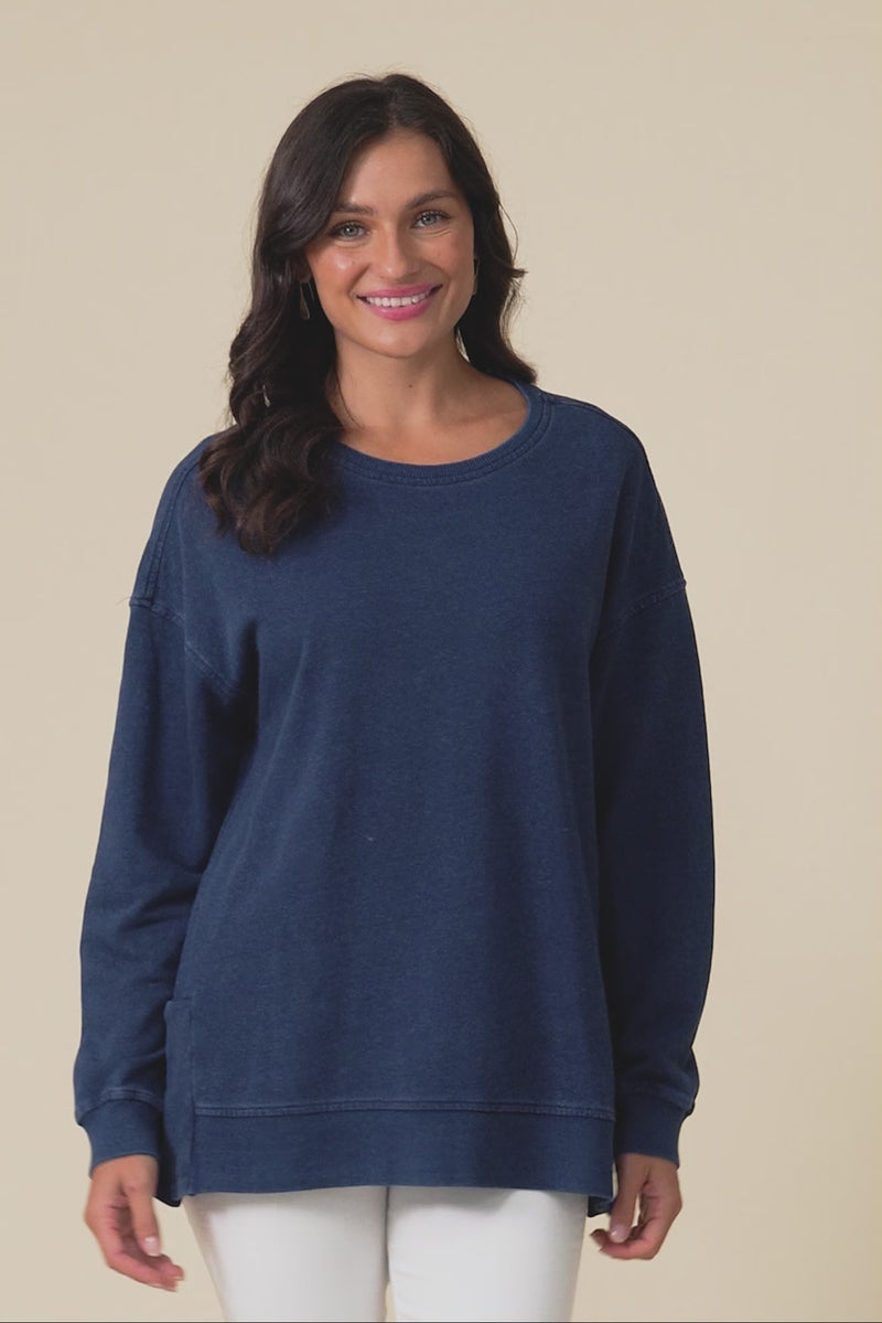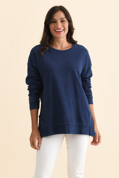 Easy Navy Cotton Crew Sweatshirt
