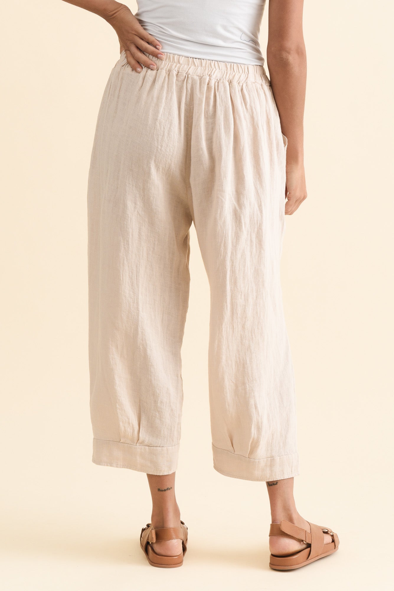 ELIDE NATURAL LINEN CROPPED PANTS