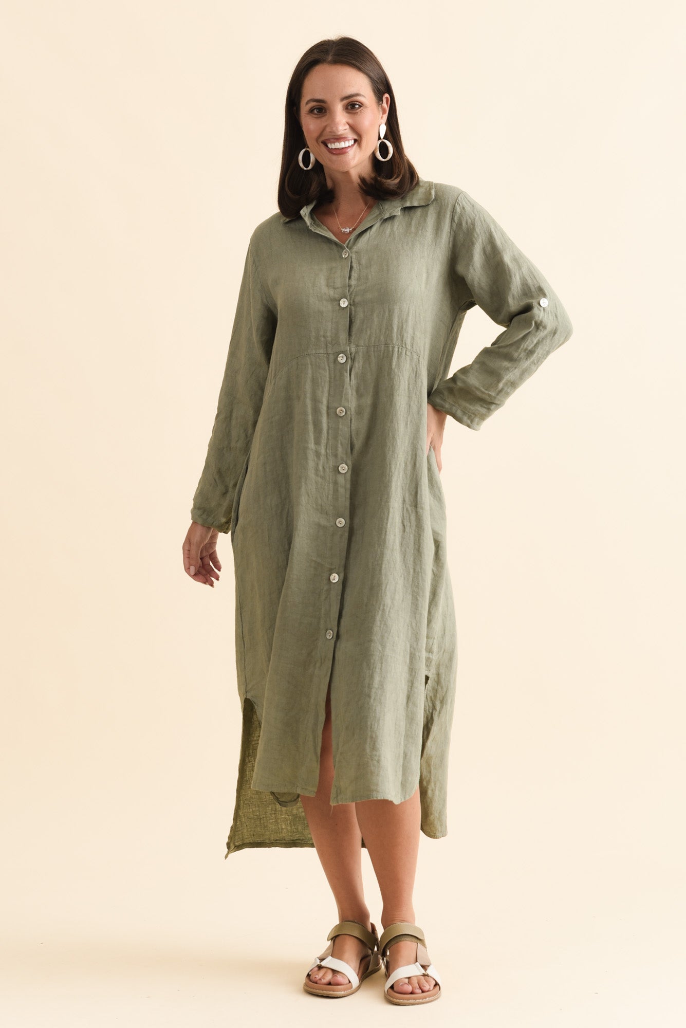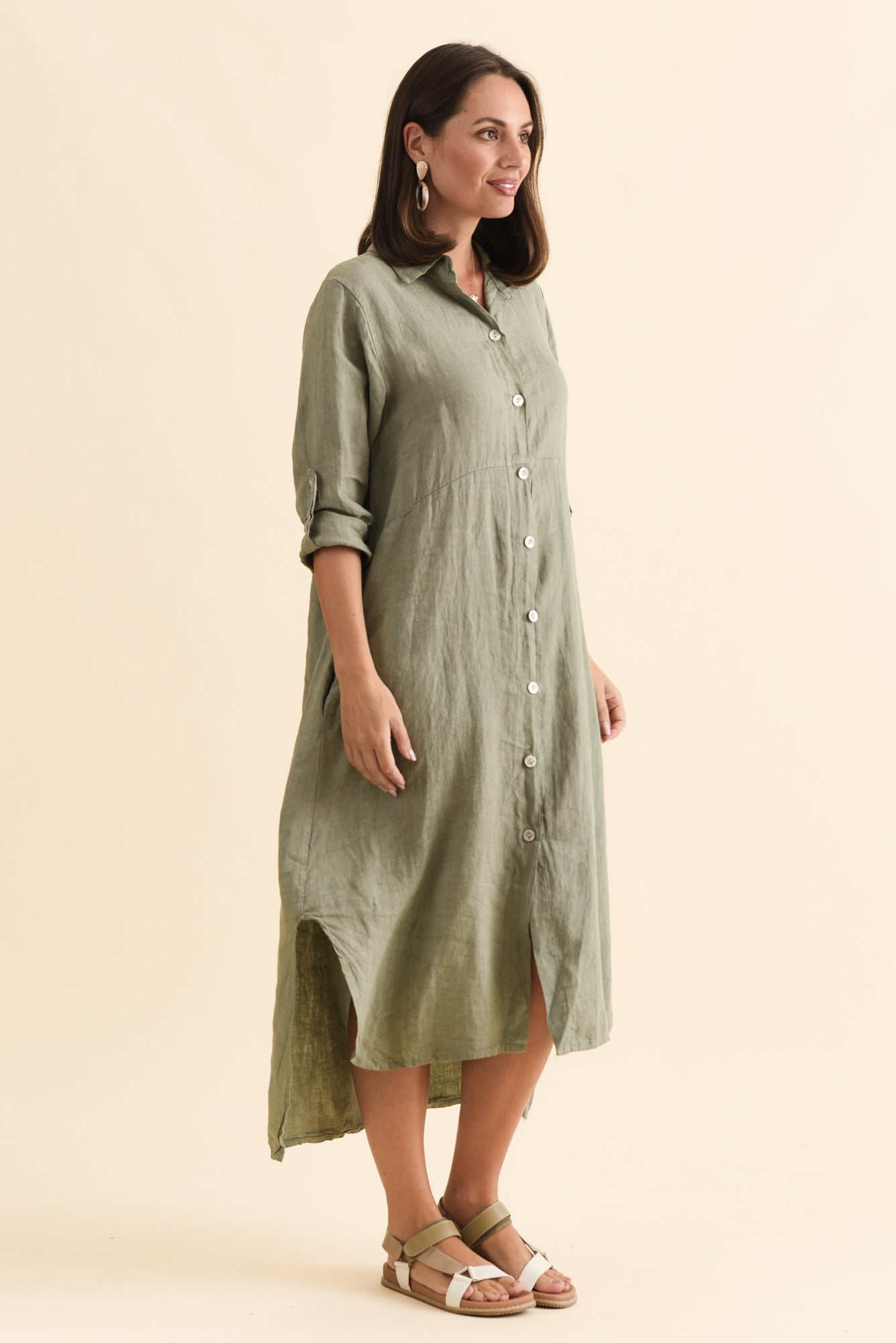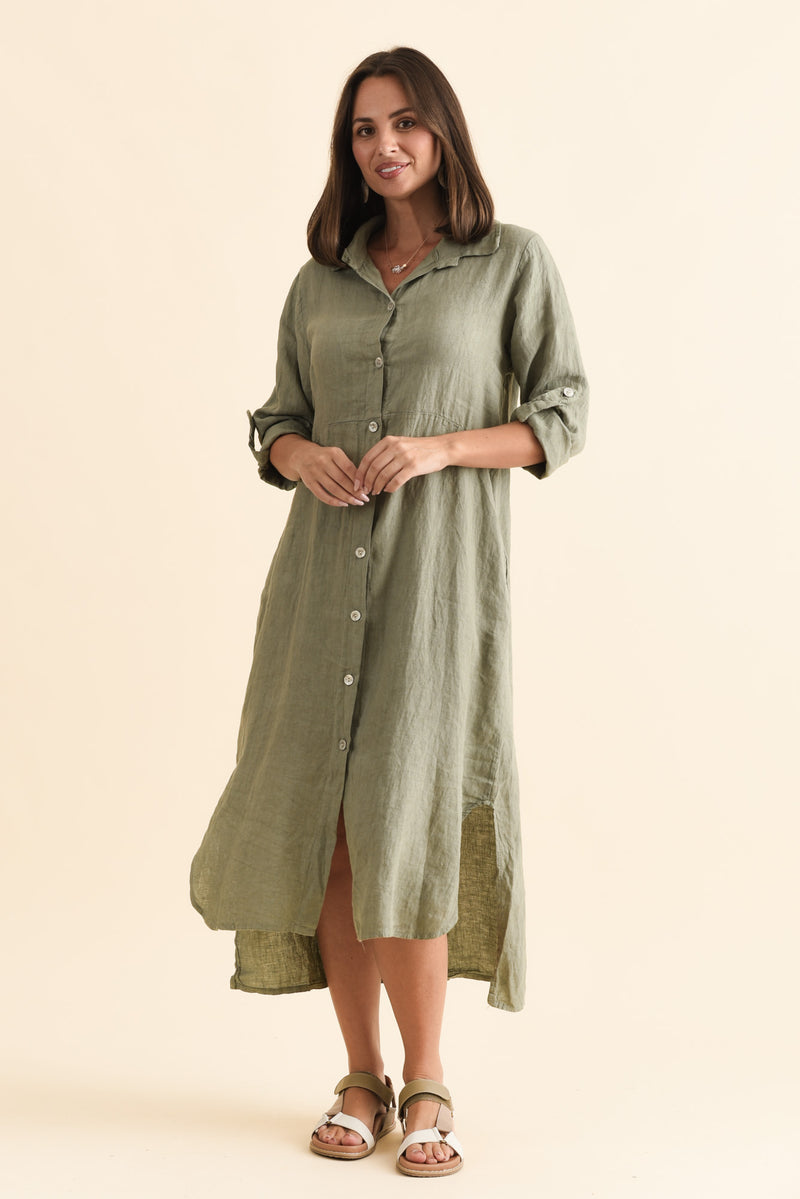 ELIN KHAKI LINEN SHIRT DRESS