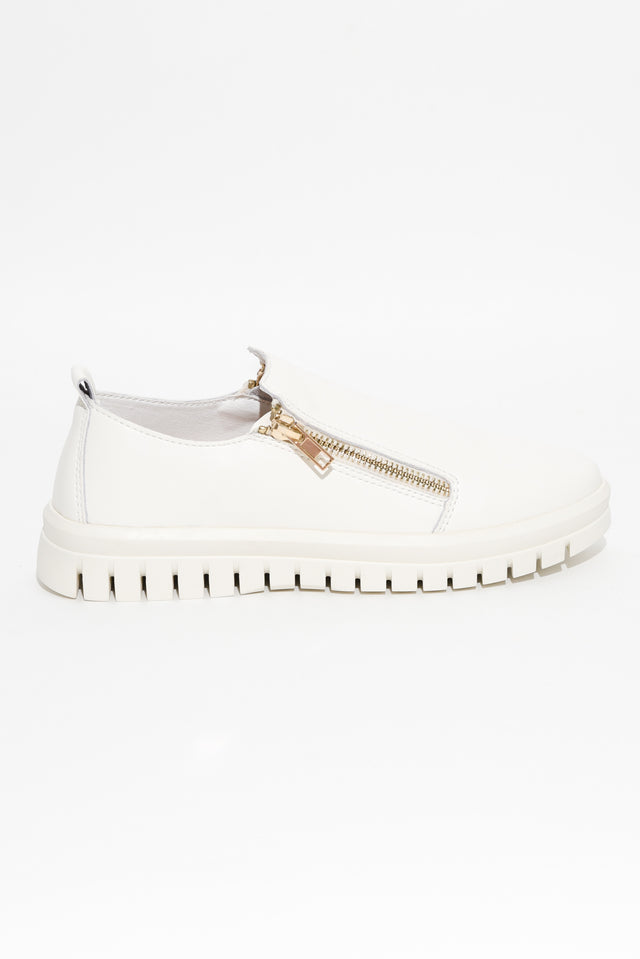 ENJOY WHITE LEATHER ZIP SNEAKER