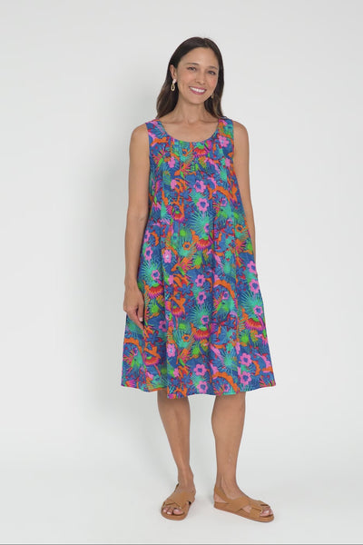 ENYA AQUA FLOWER COTTON DRESS