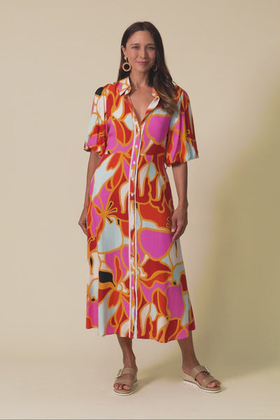 ERI RED ABSTRACT TIE DRESS