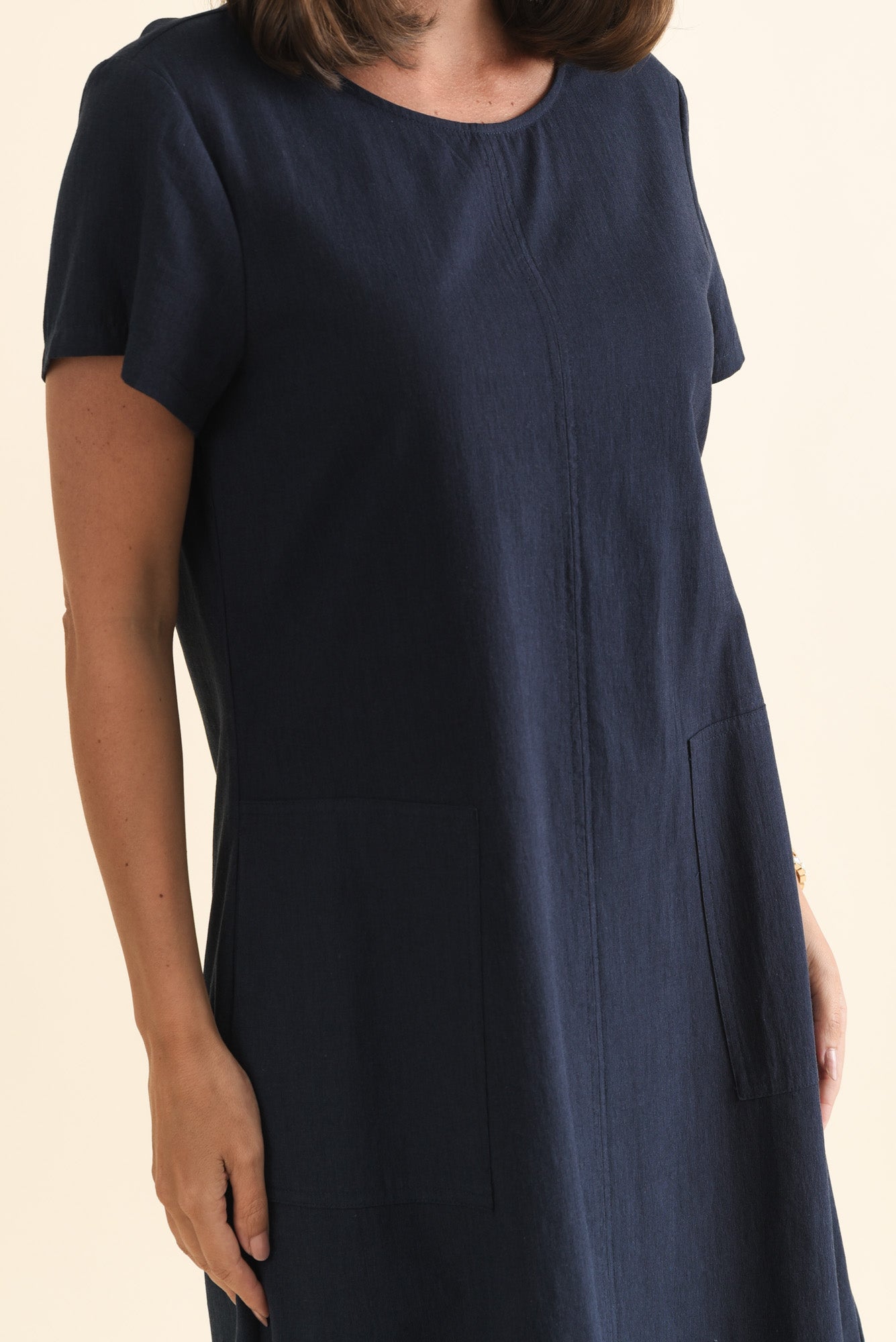 ETTY NAVY SPLICE COTTON BLEND TEE DRESS