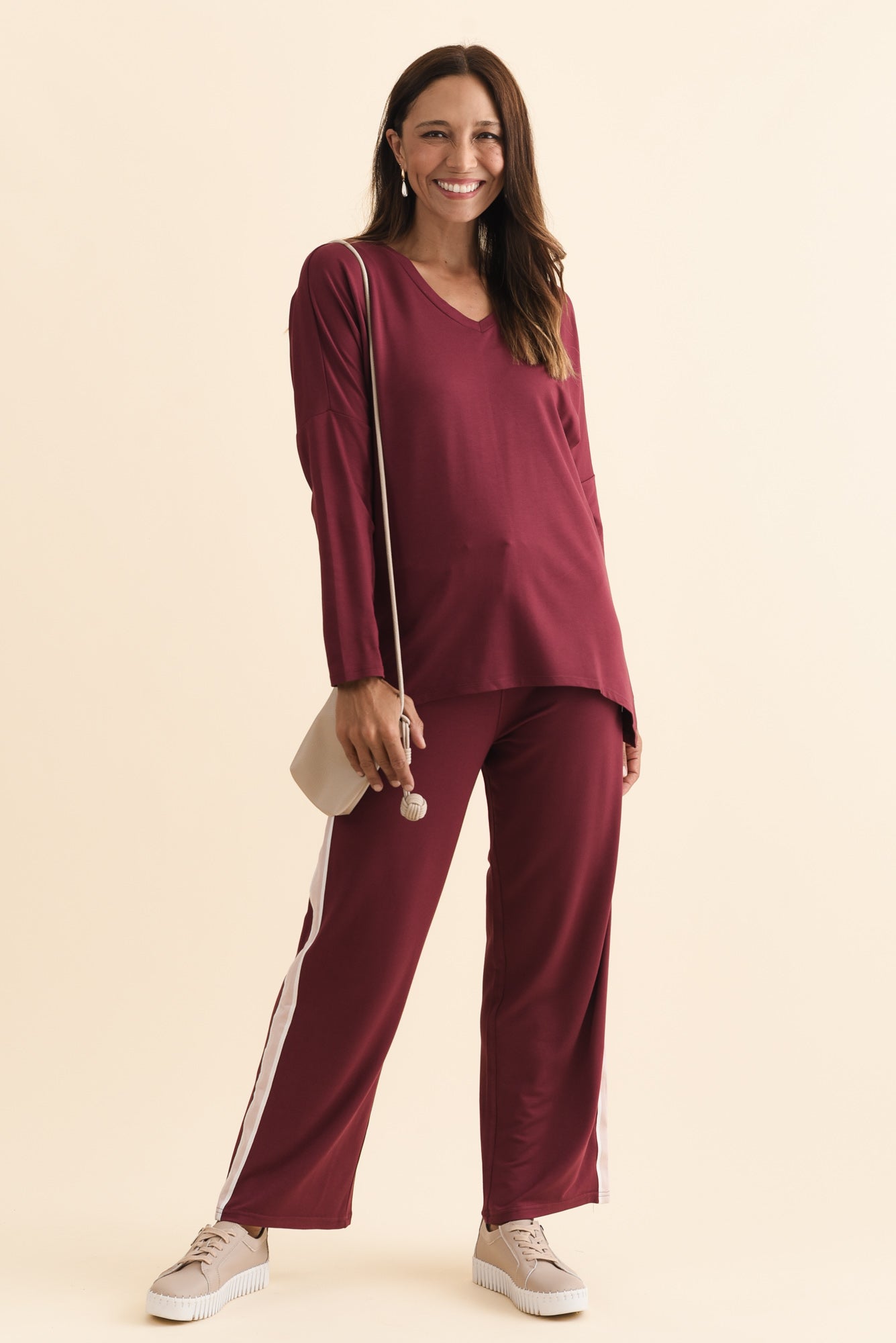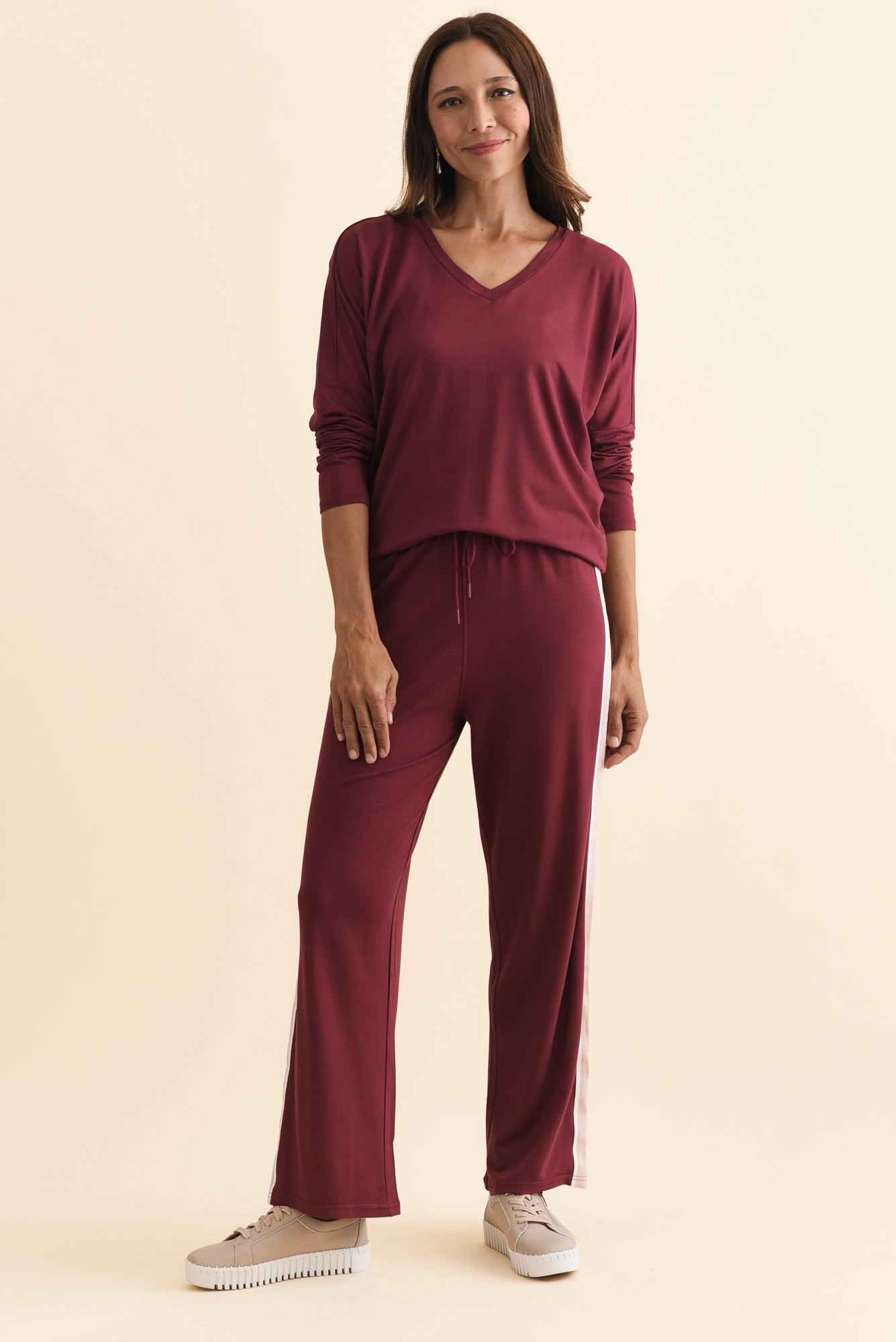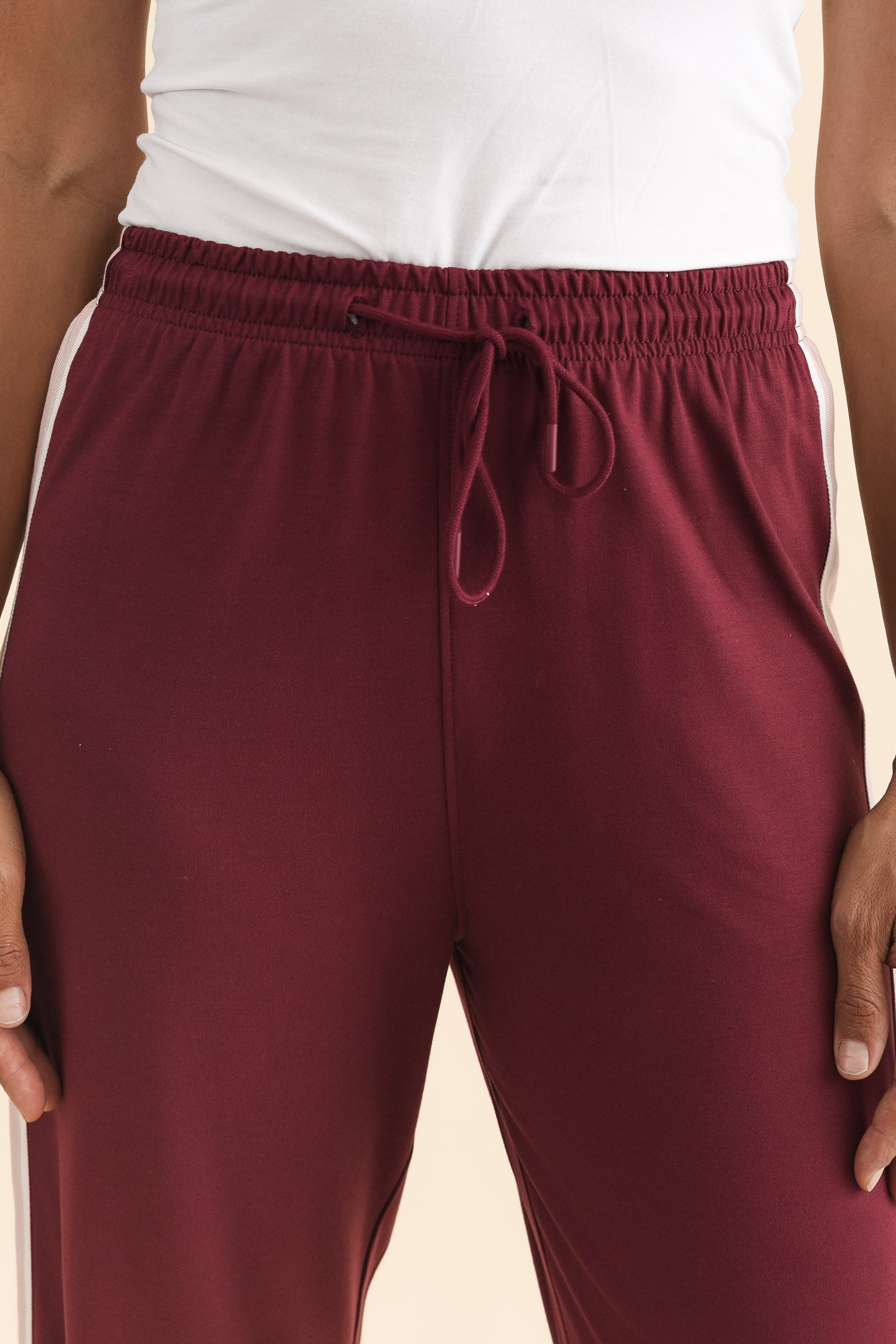 Evelyn Burgundy Contrast Trim Pants