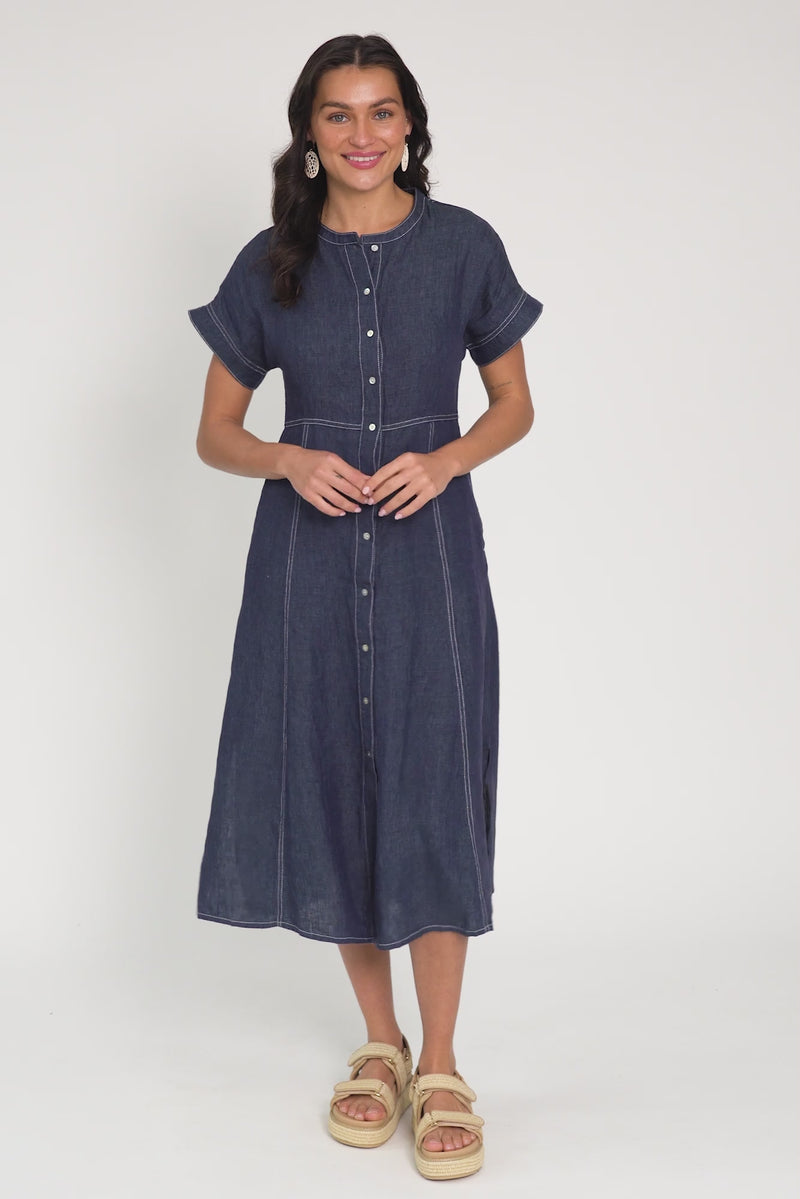 Fenton Navy Linen Button Dress