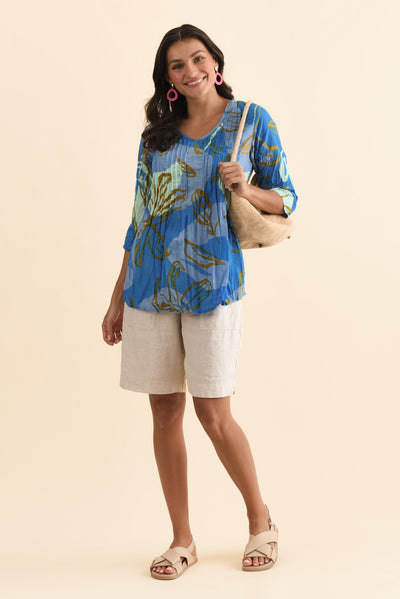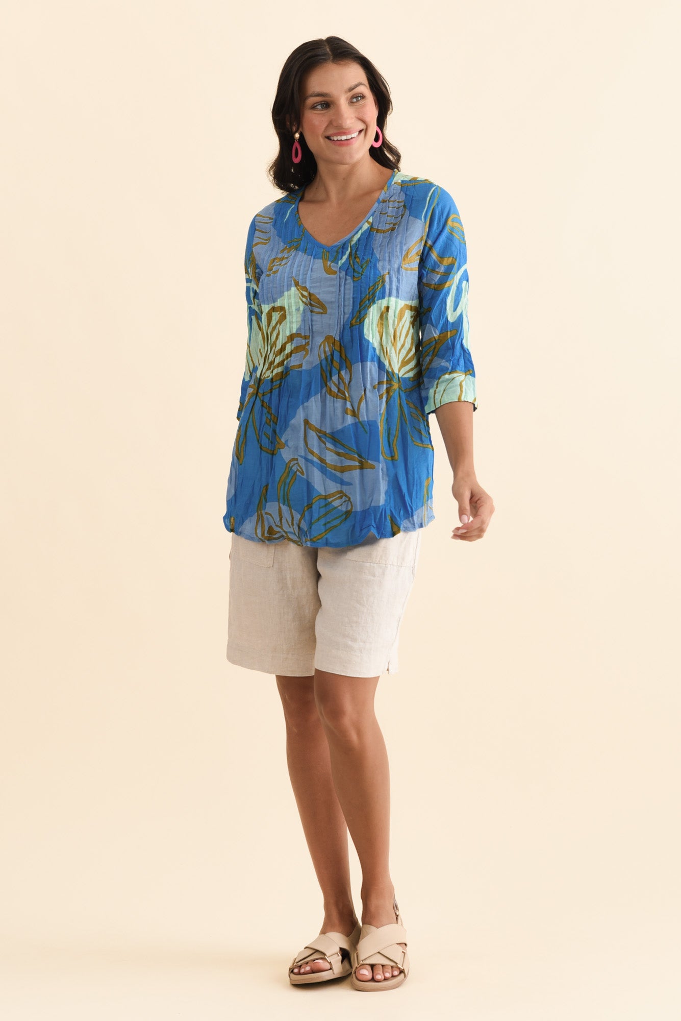 Fia Cobalt Lily Sleeved Crinkle Cotton Top