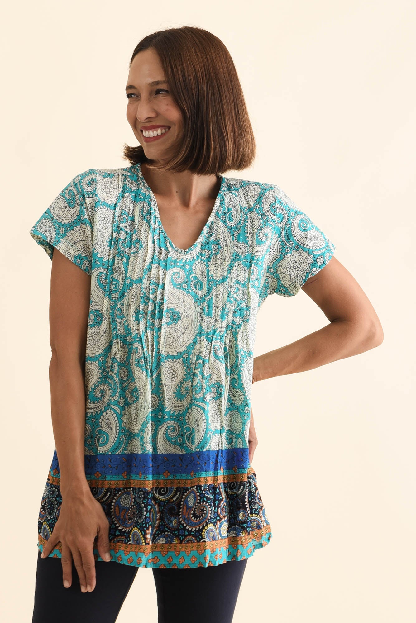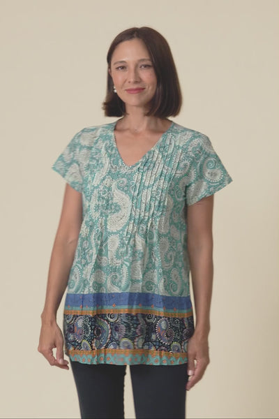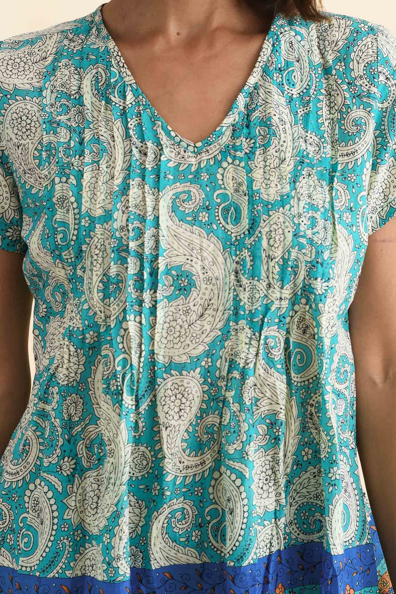 Fia Light Blue Paisley Crinkle Cotton Top