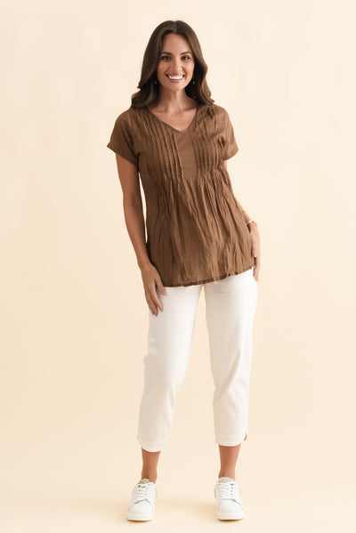 Fia Mocha Crinkle Cotton Top