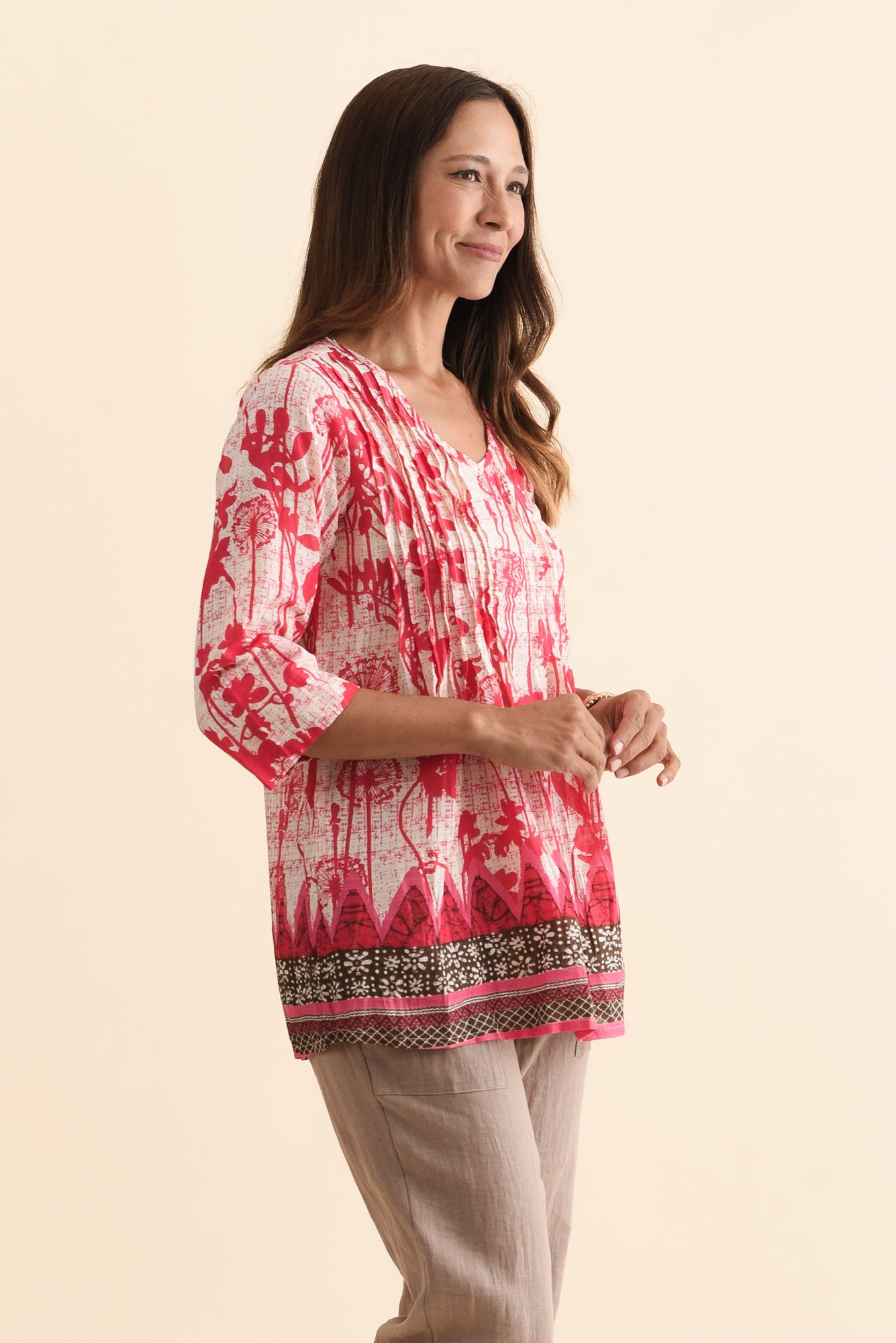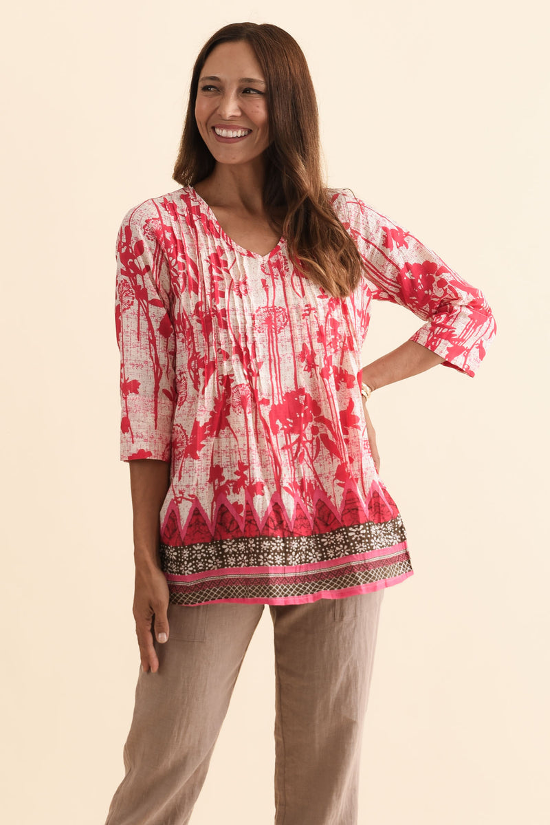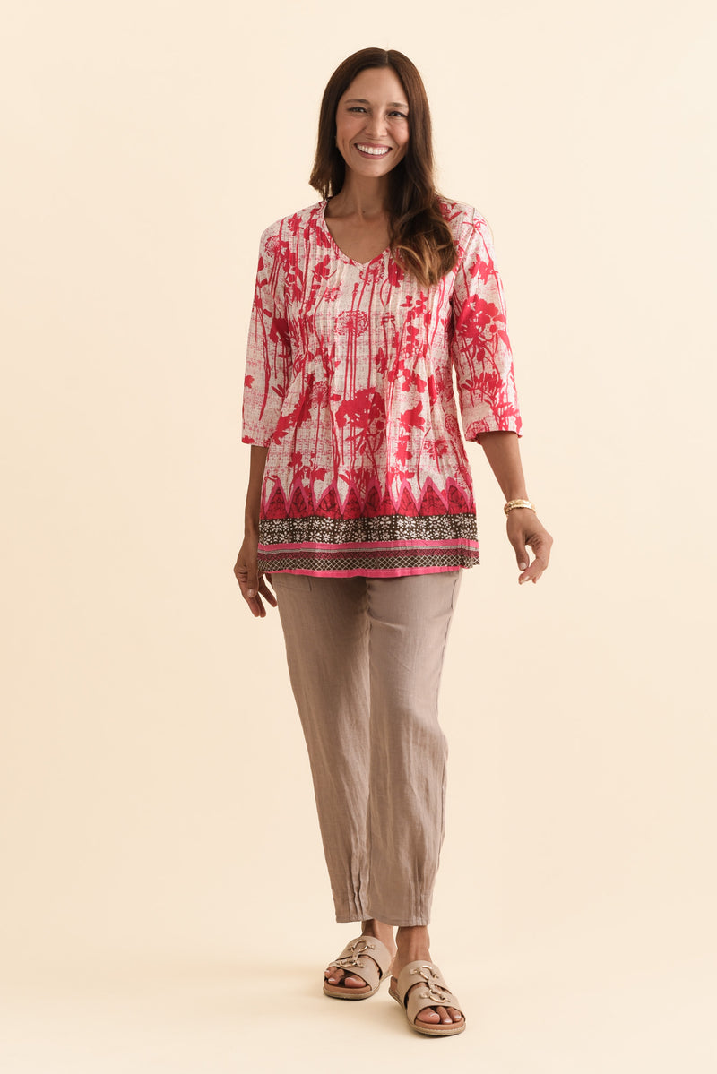 Fia Pink Dandelion Sleeved Crinkle Cotton Top