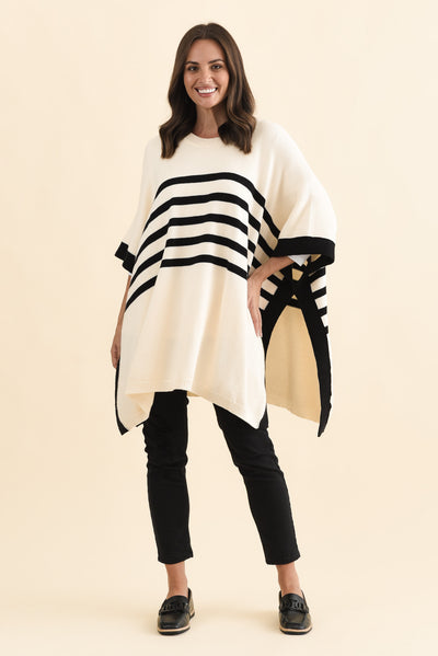 Fidelia White Stripe Knit Drape Top