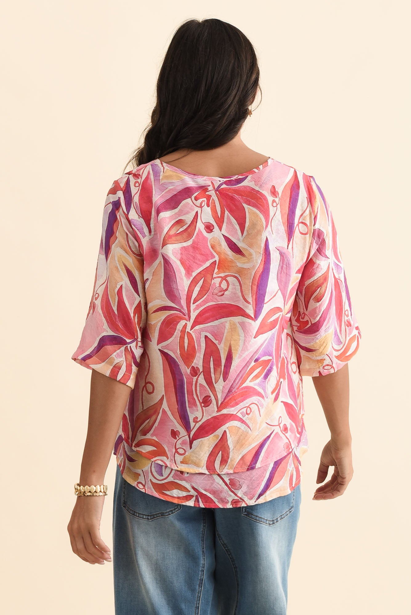 Folk Pink Flower Frill Top