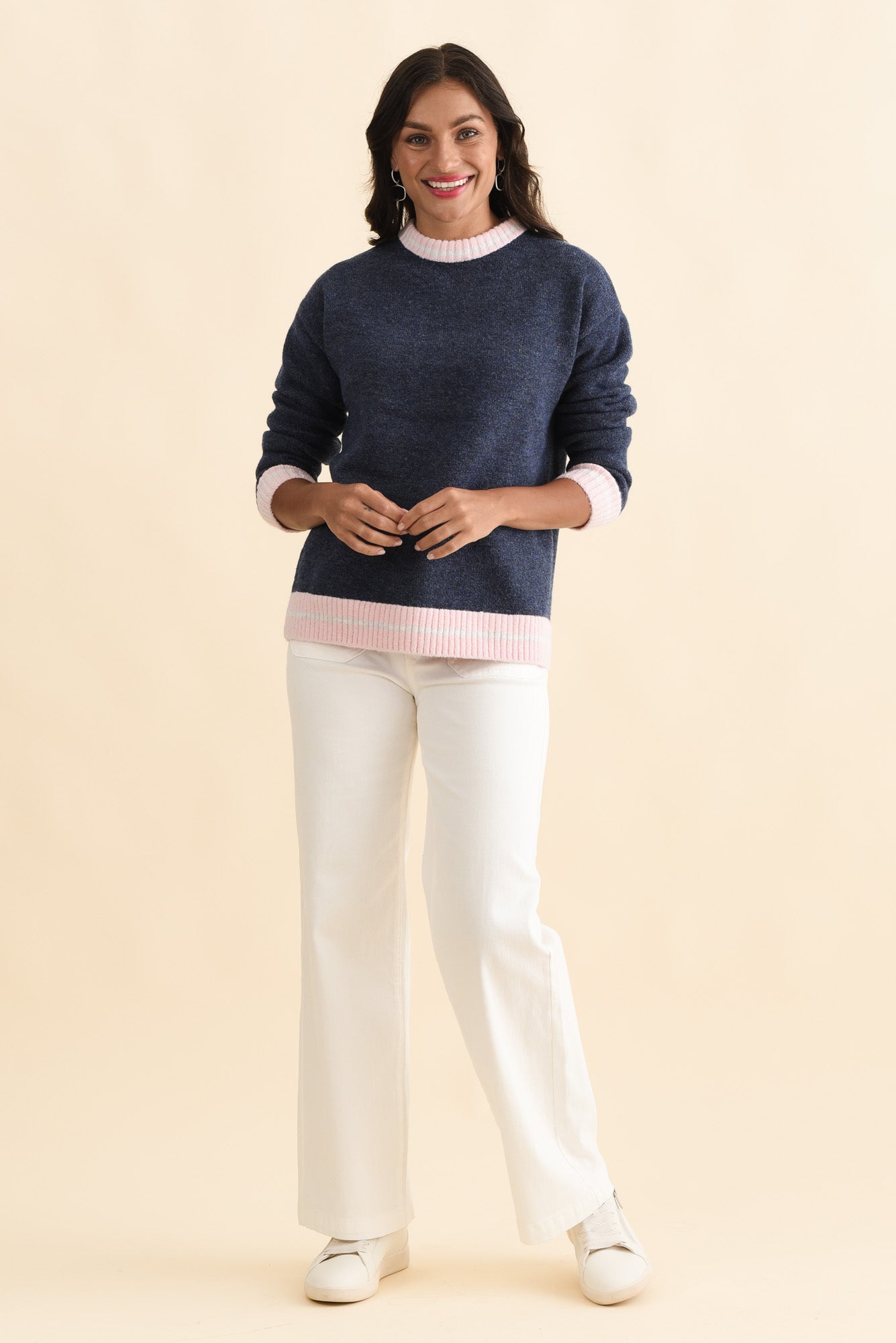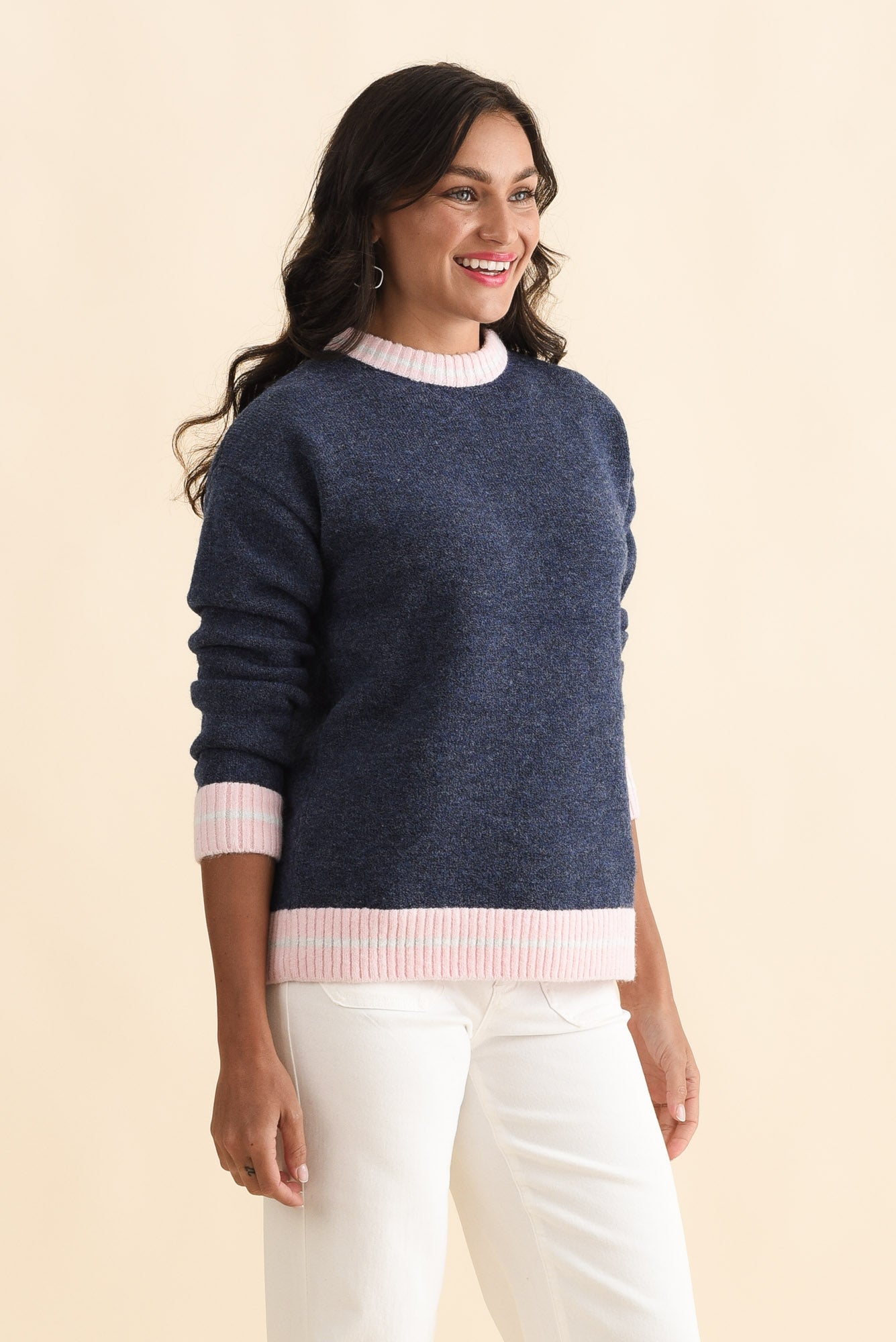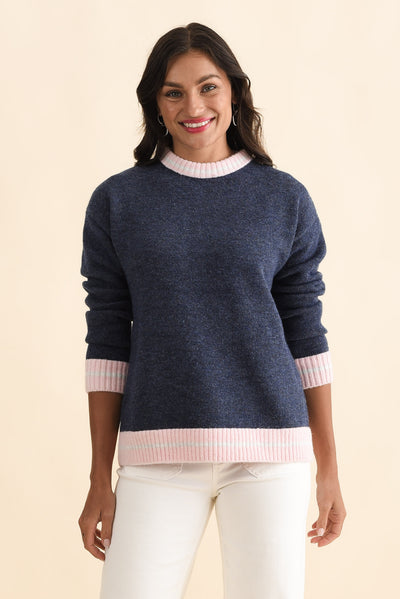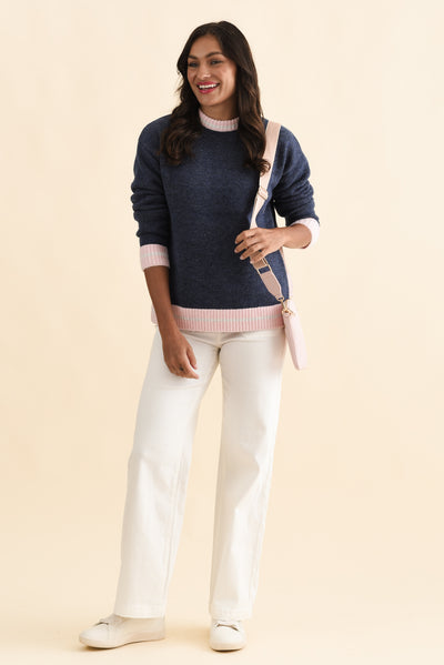 Fowler Navy Contrast Trim Knit Jumper