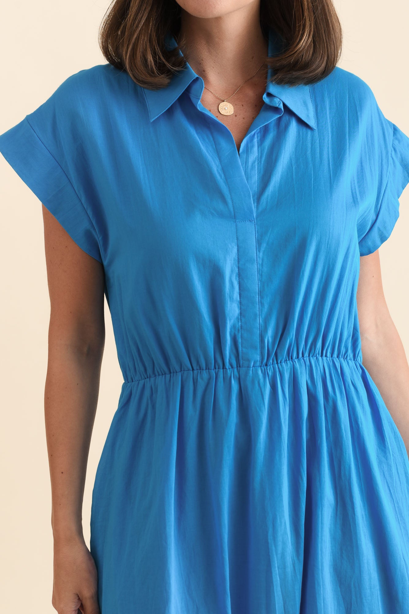 FREYA COBALT COTTON COLLARED DRESS