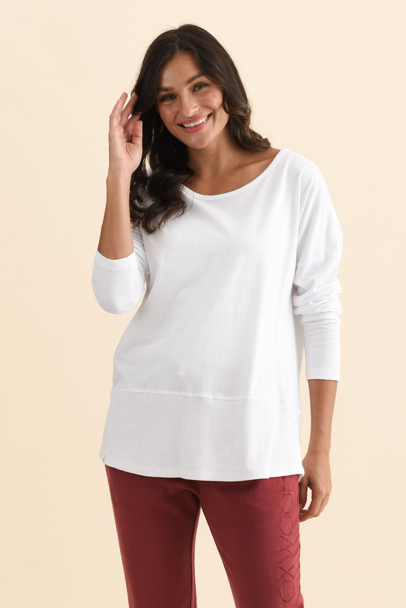 Fundamental White Cotton Rib Sleeved Top