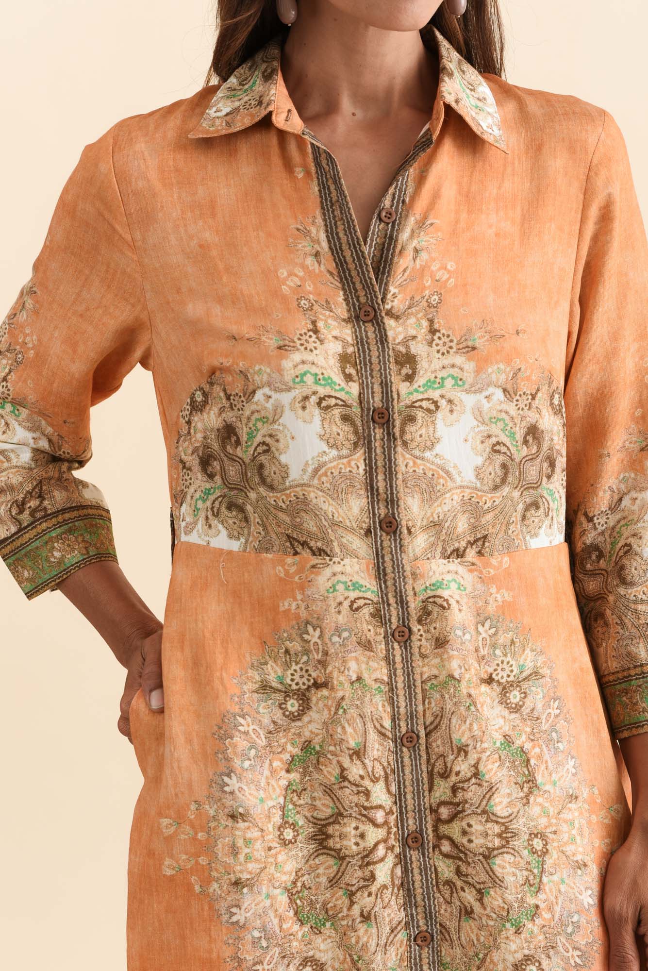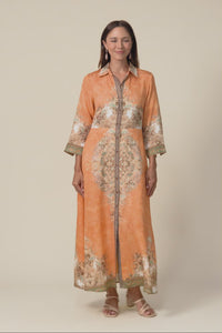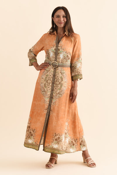GABY ORANGE ABSTRACT COTTON LINEN DRESS