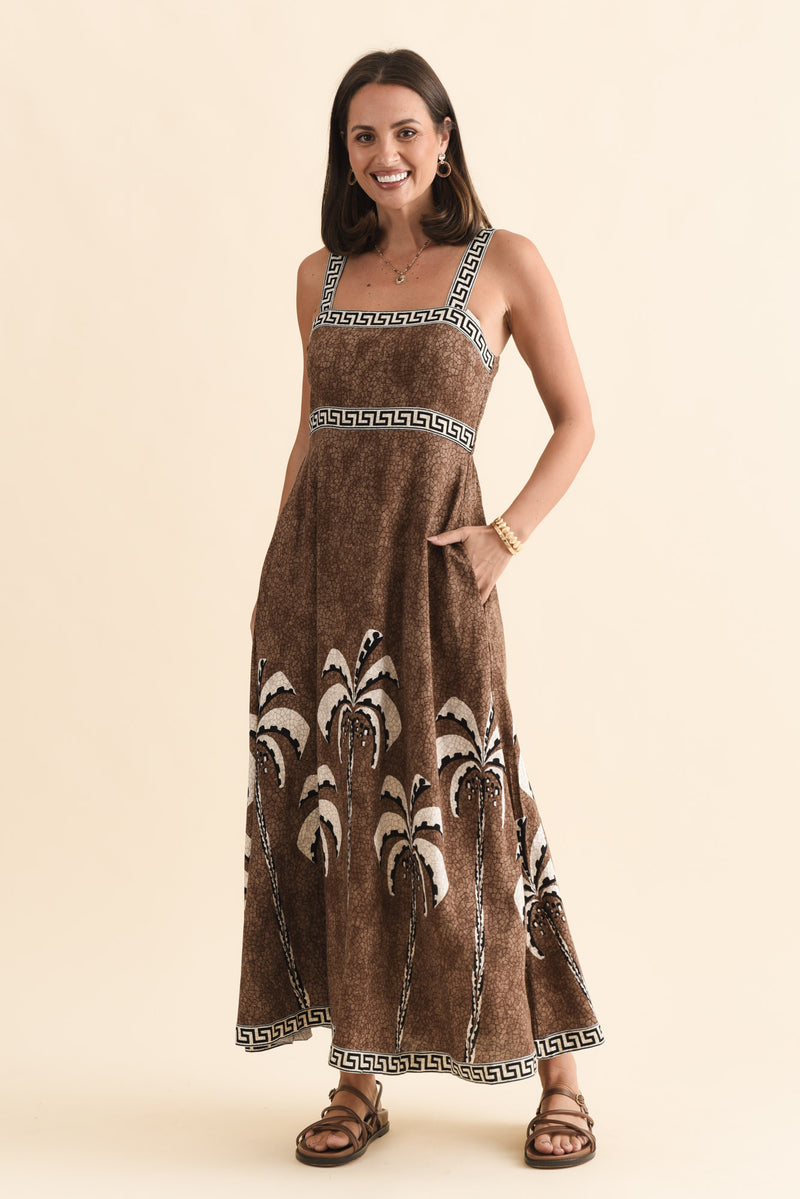 GIOVANNA BROWN TROPICAL MAXI DRESS