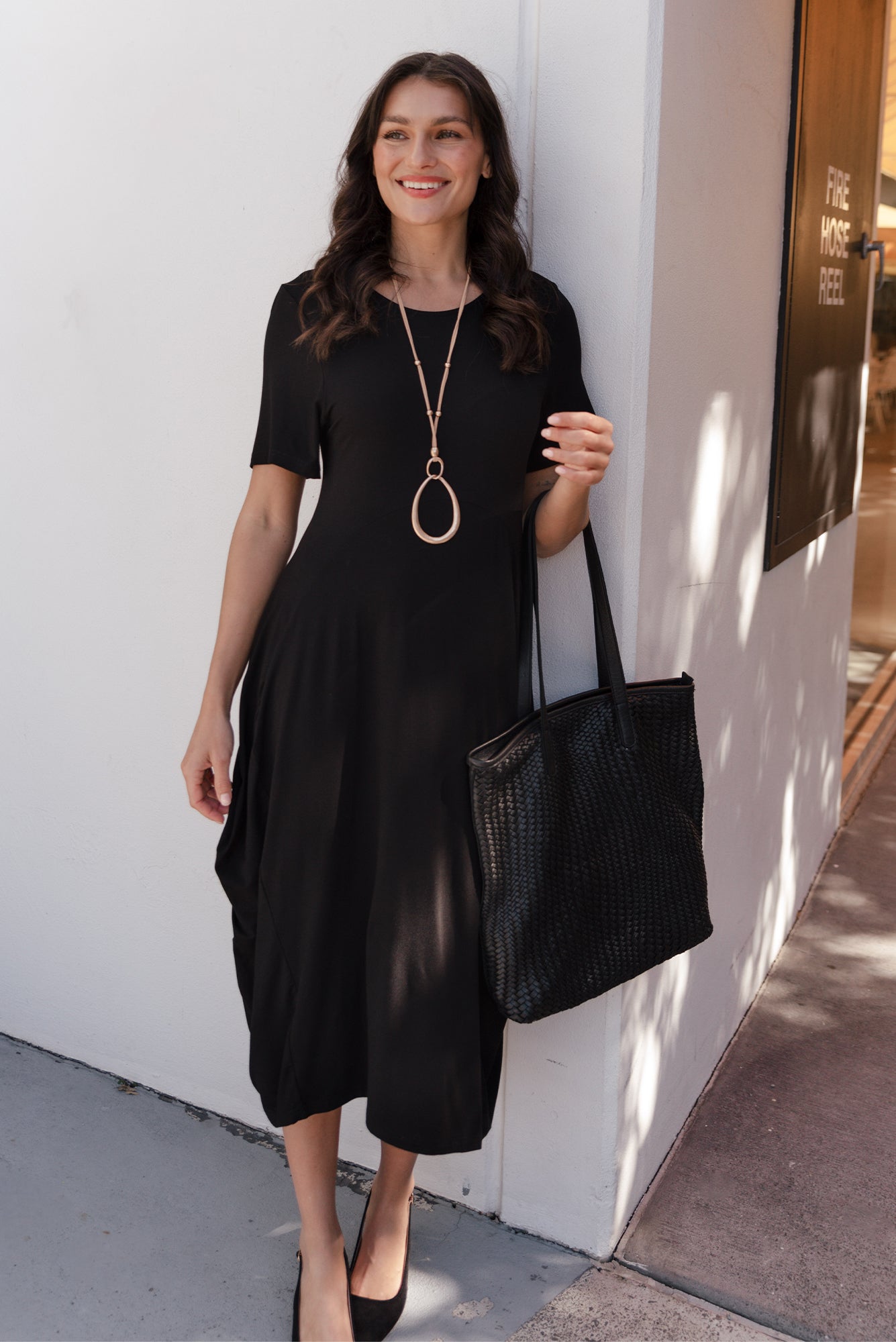 GLENDA BLACK SHORT SLEEVE CRESCENT DRESS