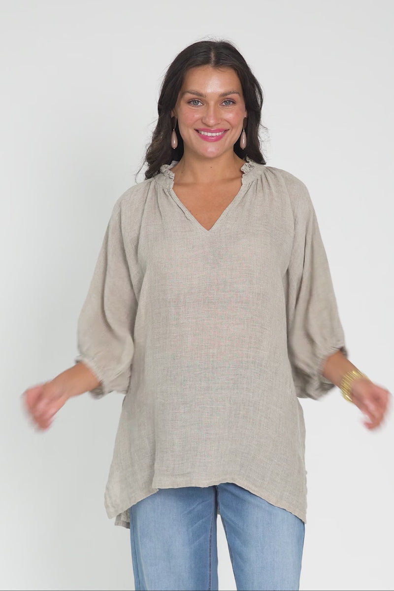 GRANADA NATURAL LINEN V NECK TOP