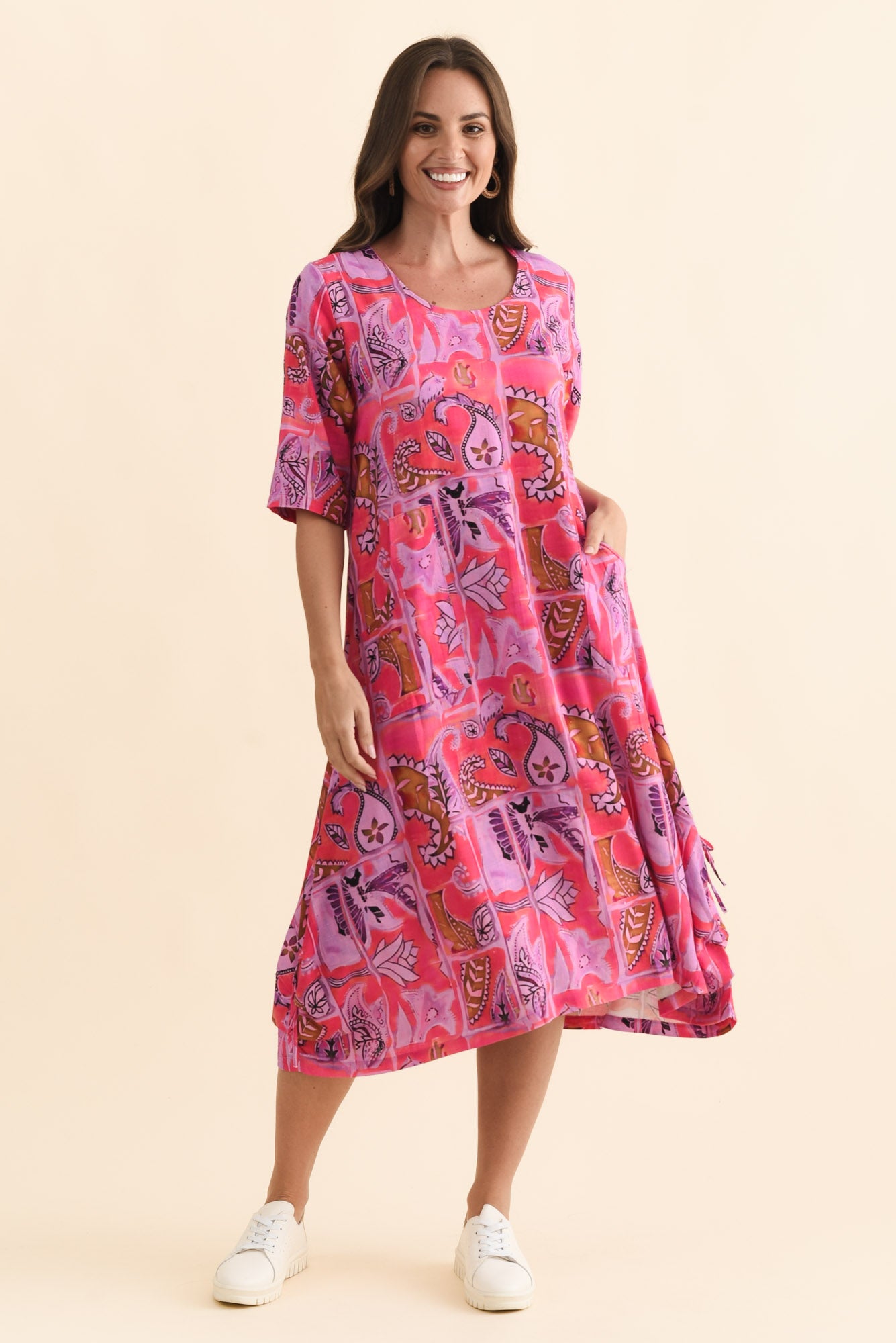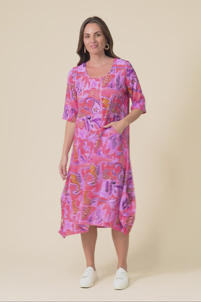HAILEE PINK PAISLEY LINEN COTTON DRESS