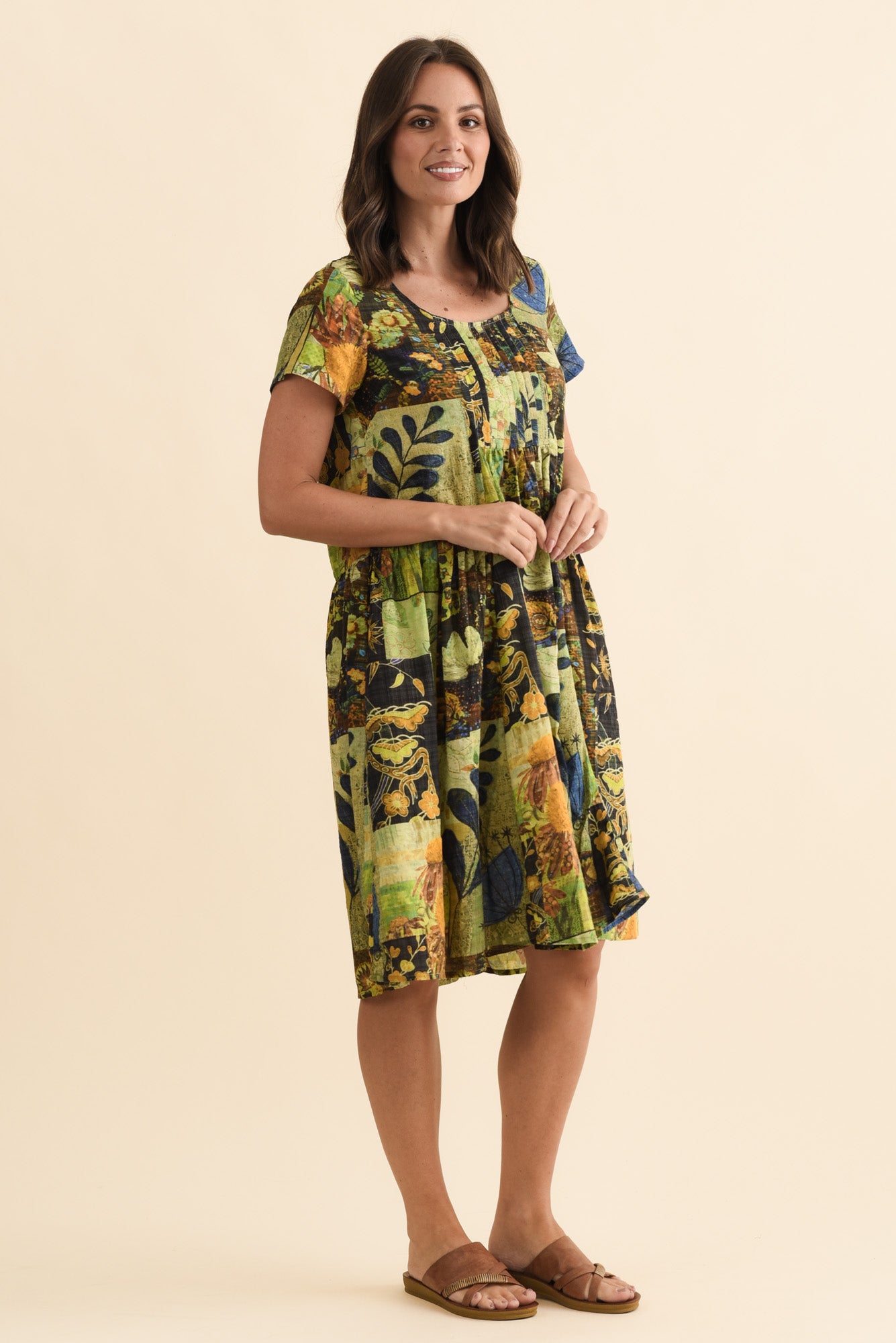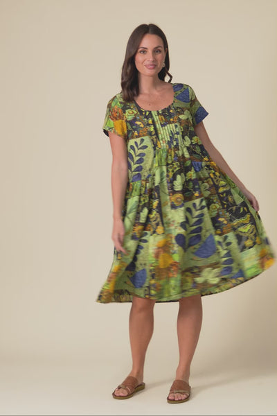 Hanoi Green Botanical Cotton Blend Dress