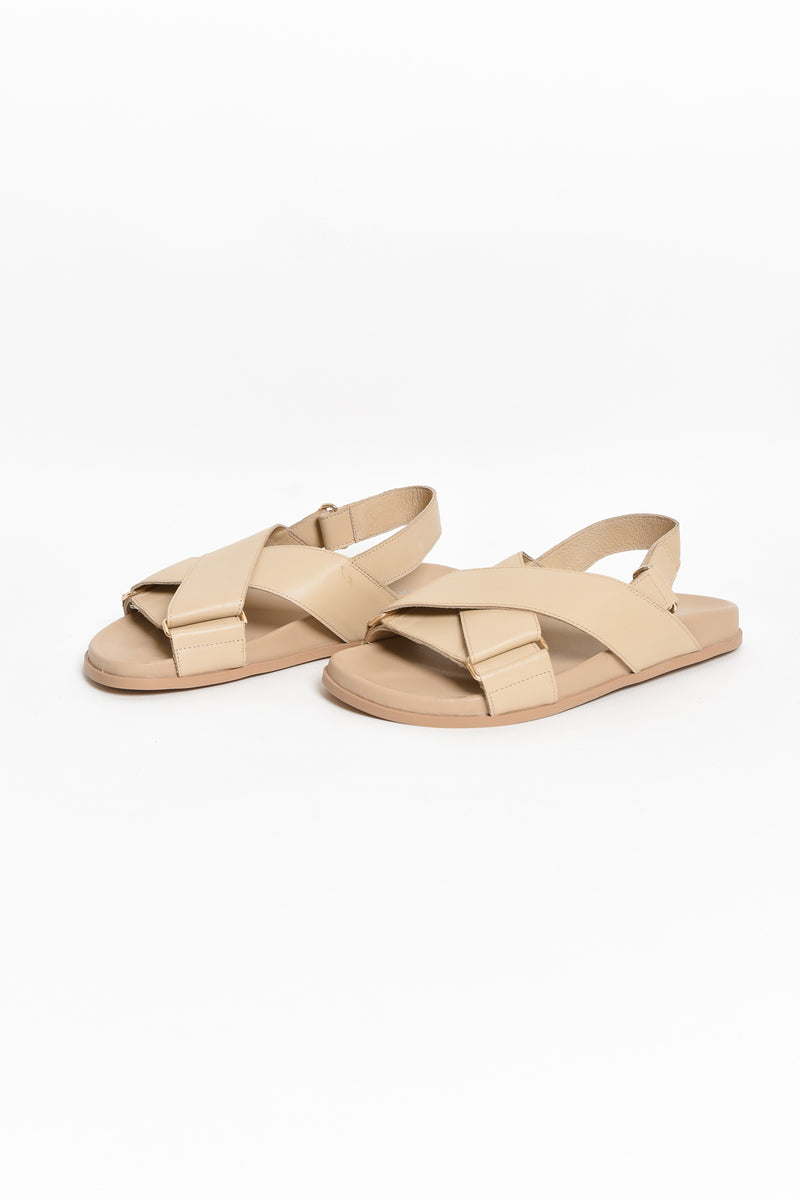HAYLOW STONE LEATHER CROSSOVER SANDAL