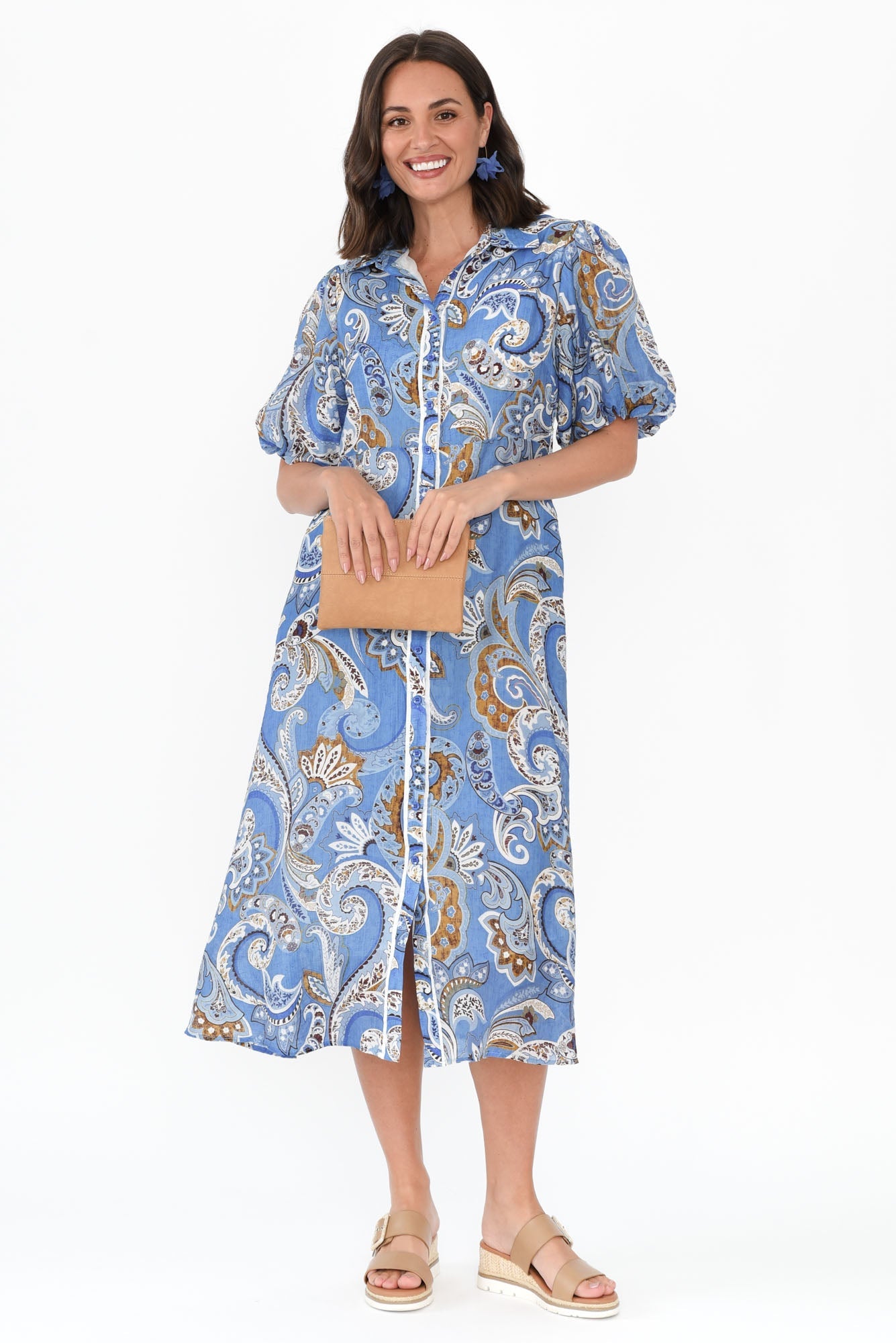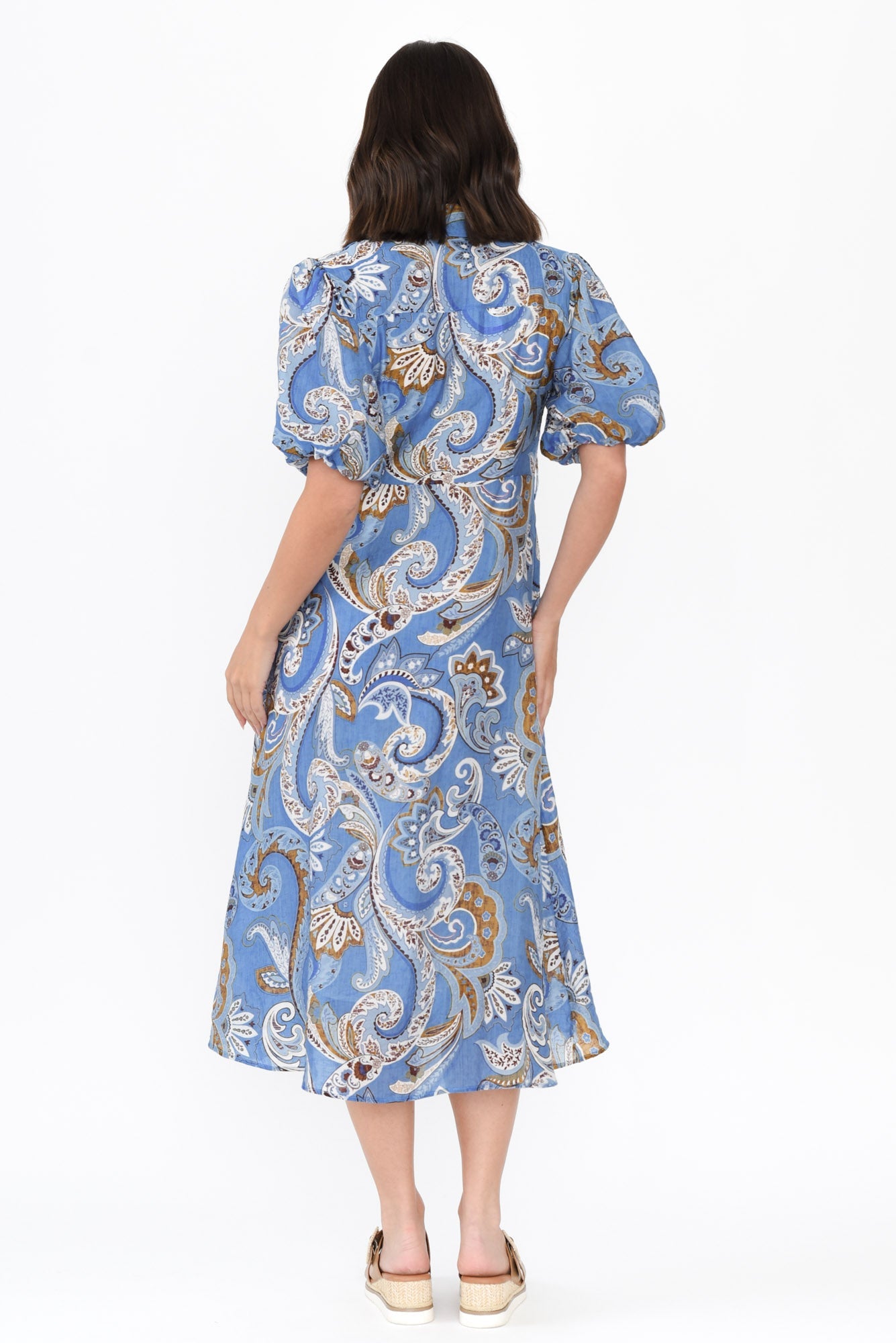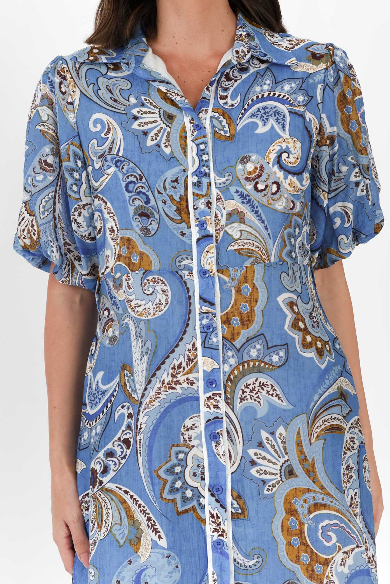 HILMA BLUE PAISLEY COTTON BLEND TIE DRESS
