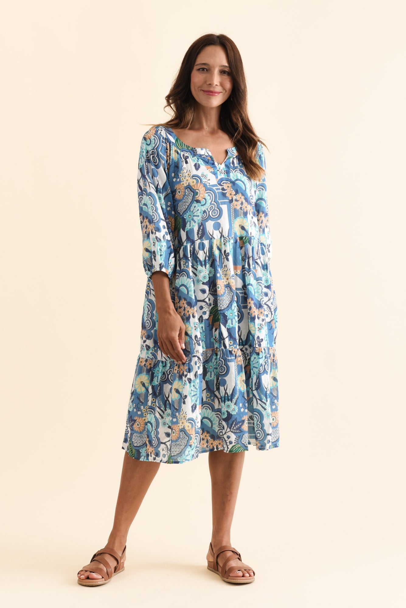 IRENE BLUE FLORAL COTTON BLEND DRESS