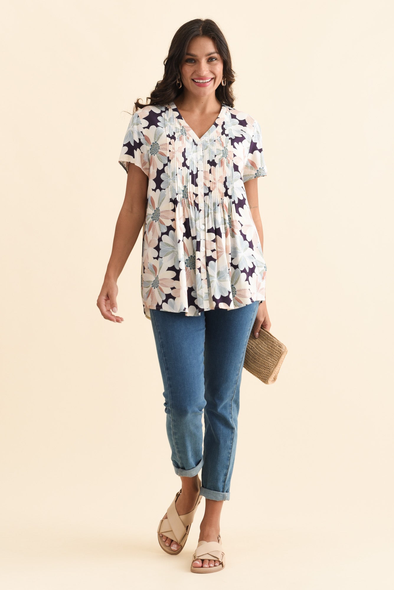Isobel Blue Flower Button Top