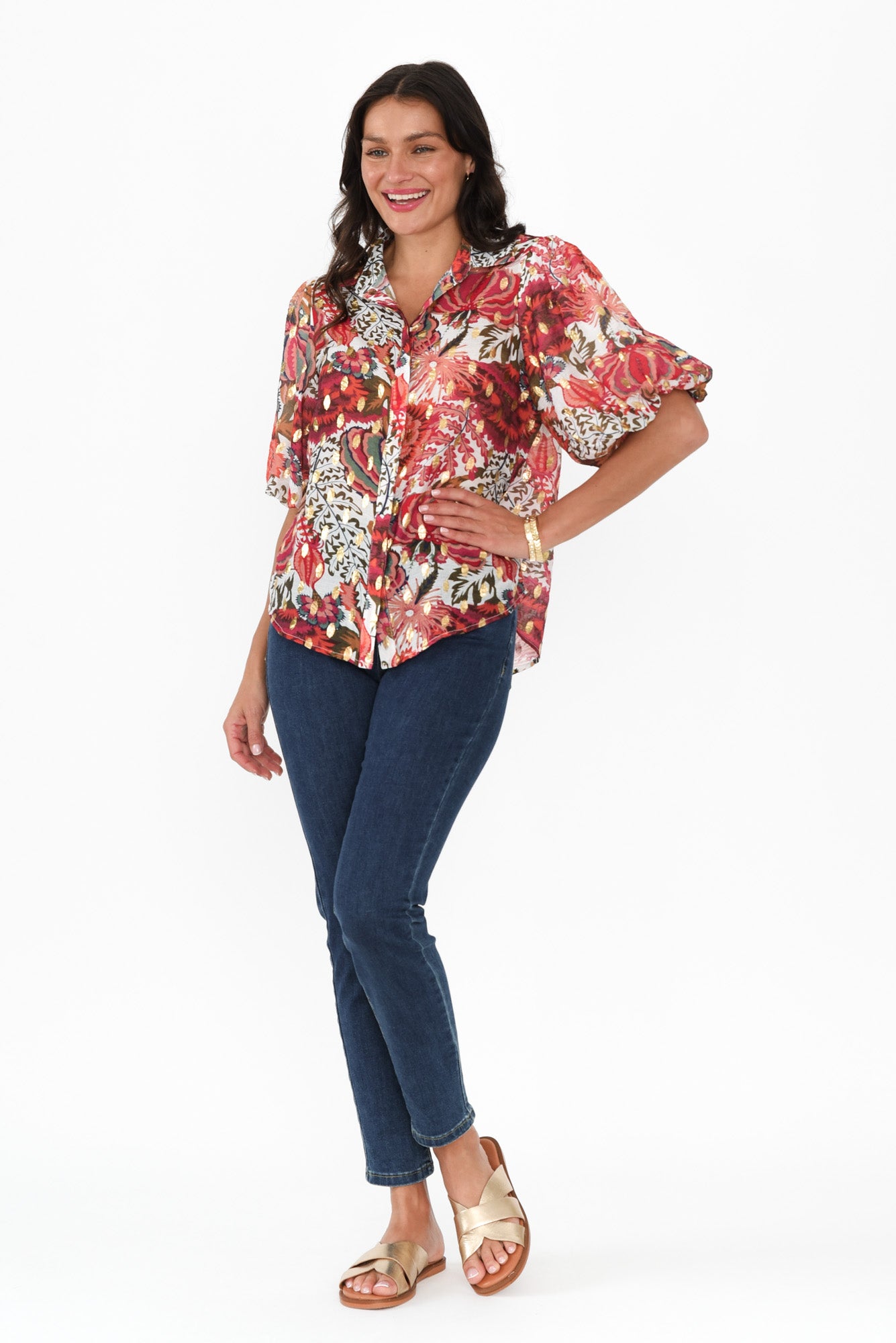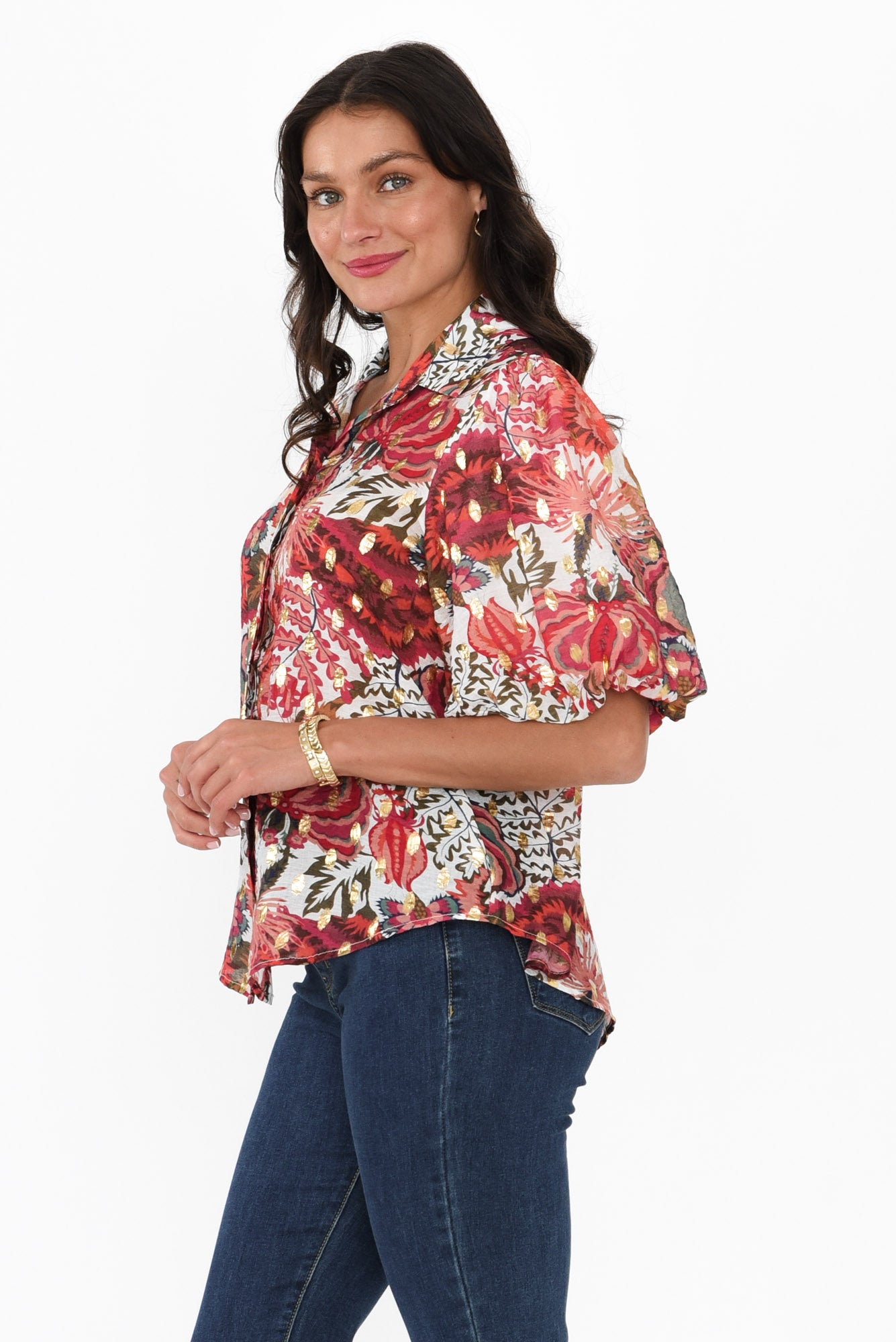 ISOTTA PINK FLORAL COTTON BLEND SHIRT