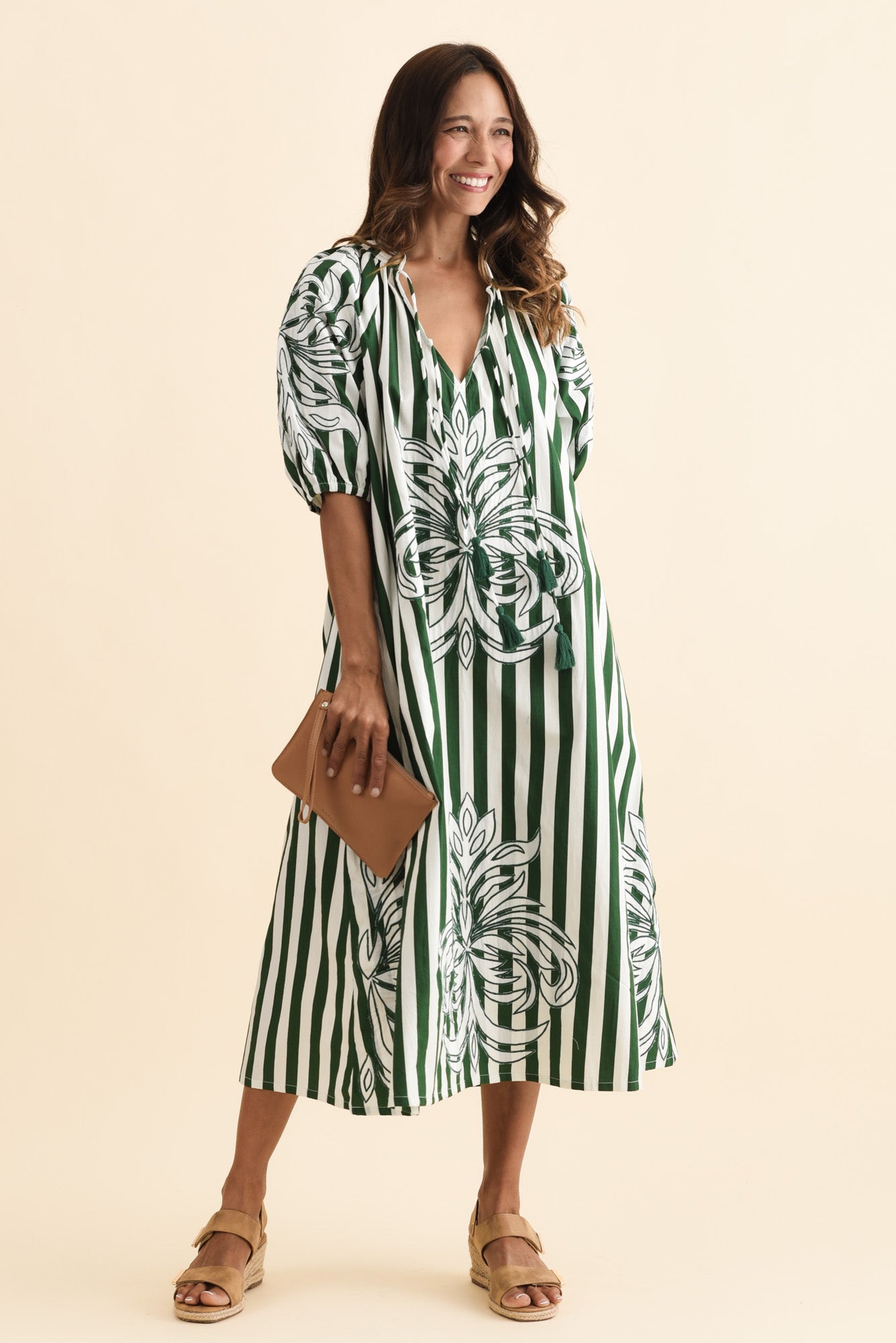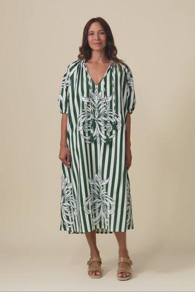 Ivanka Green Stripe Cotton Tie Dress