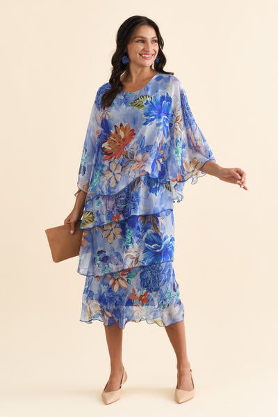 JASMINE BLUE FLORAL SILK LAYER DRESS