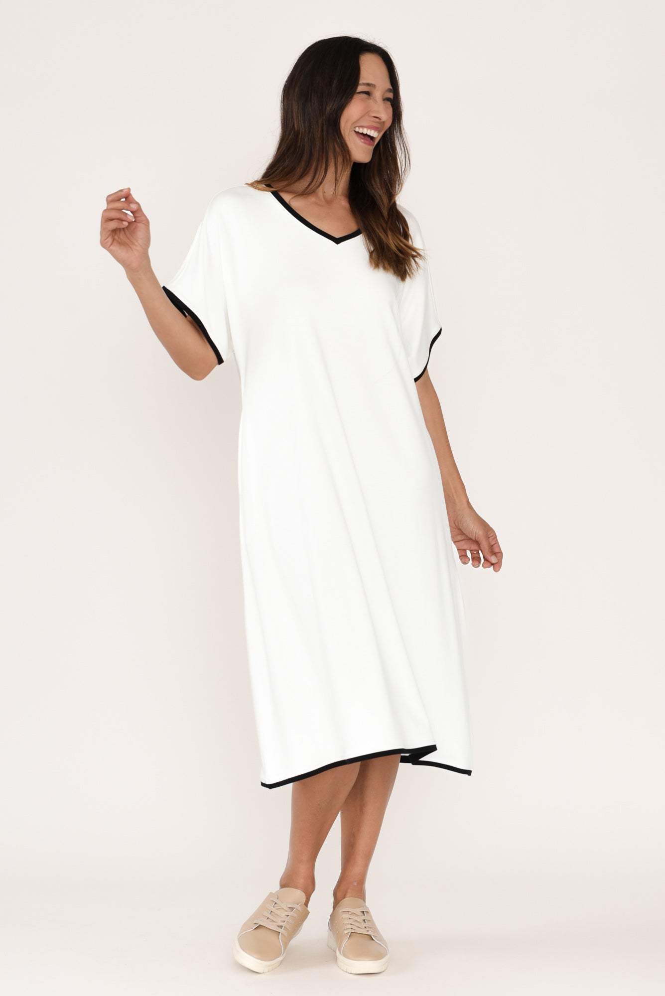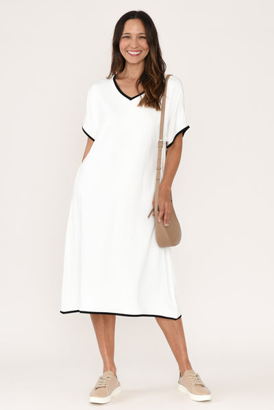 JEMIMA WHITE CONTRAST V NECK DRESS