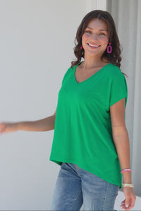 Jenner Green V Neck Tee