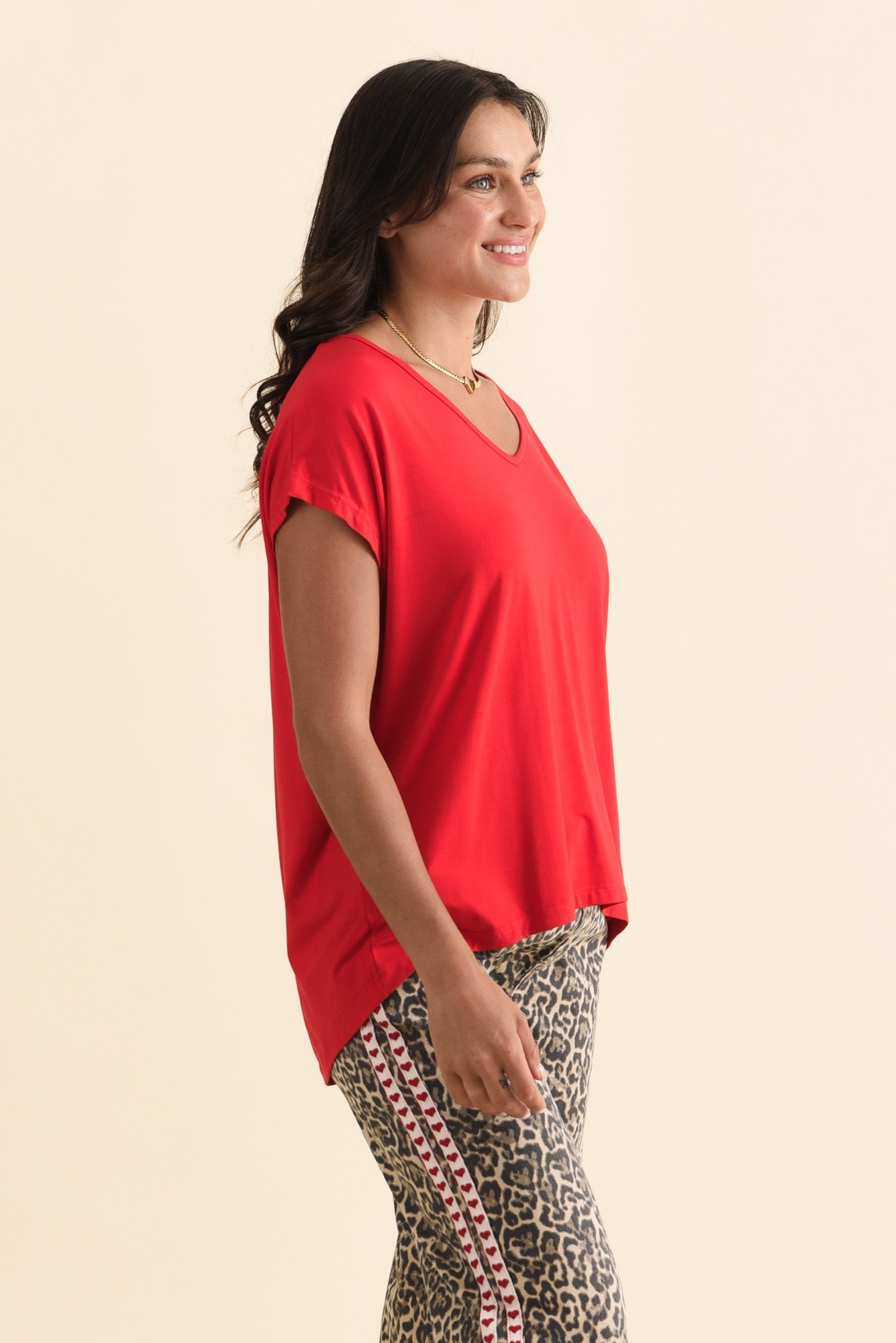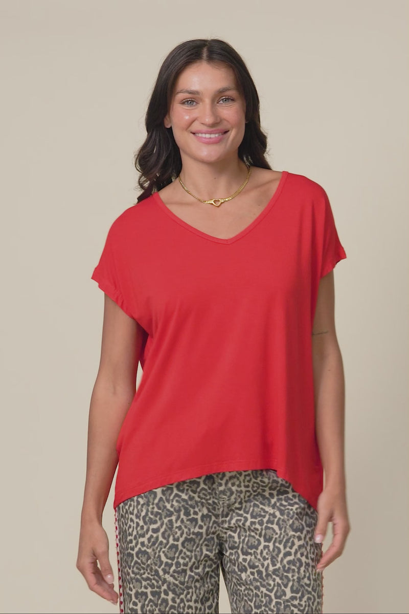 JENNER RED V NECK TEE