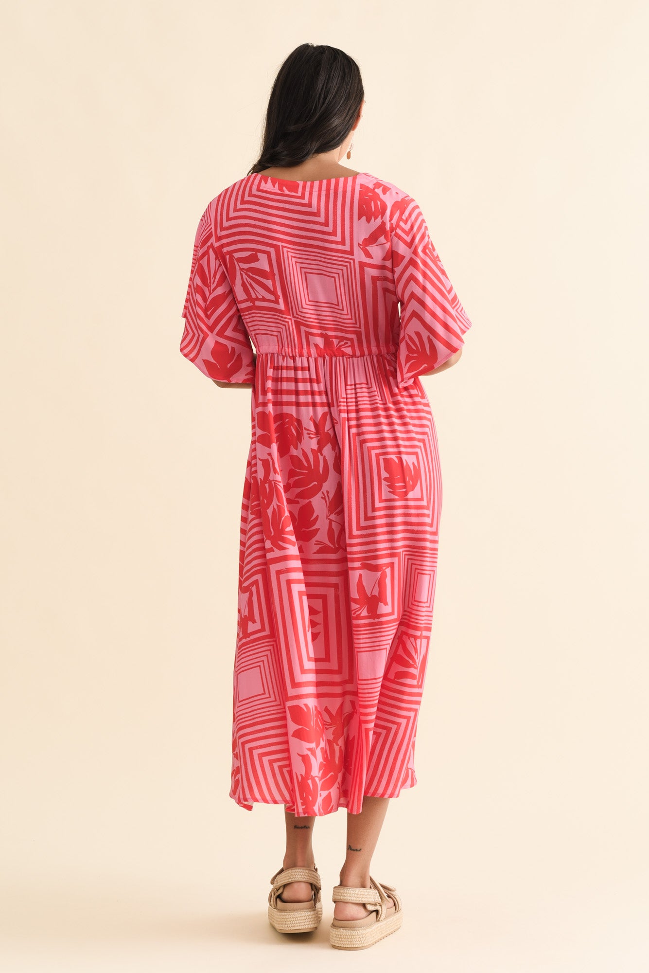 JENNIFER PINK TILE FLUTTER SLEEVE DRESS