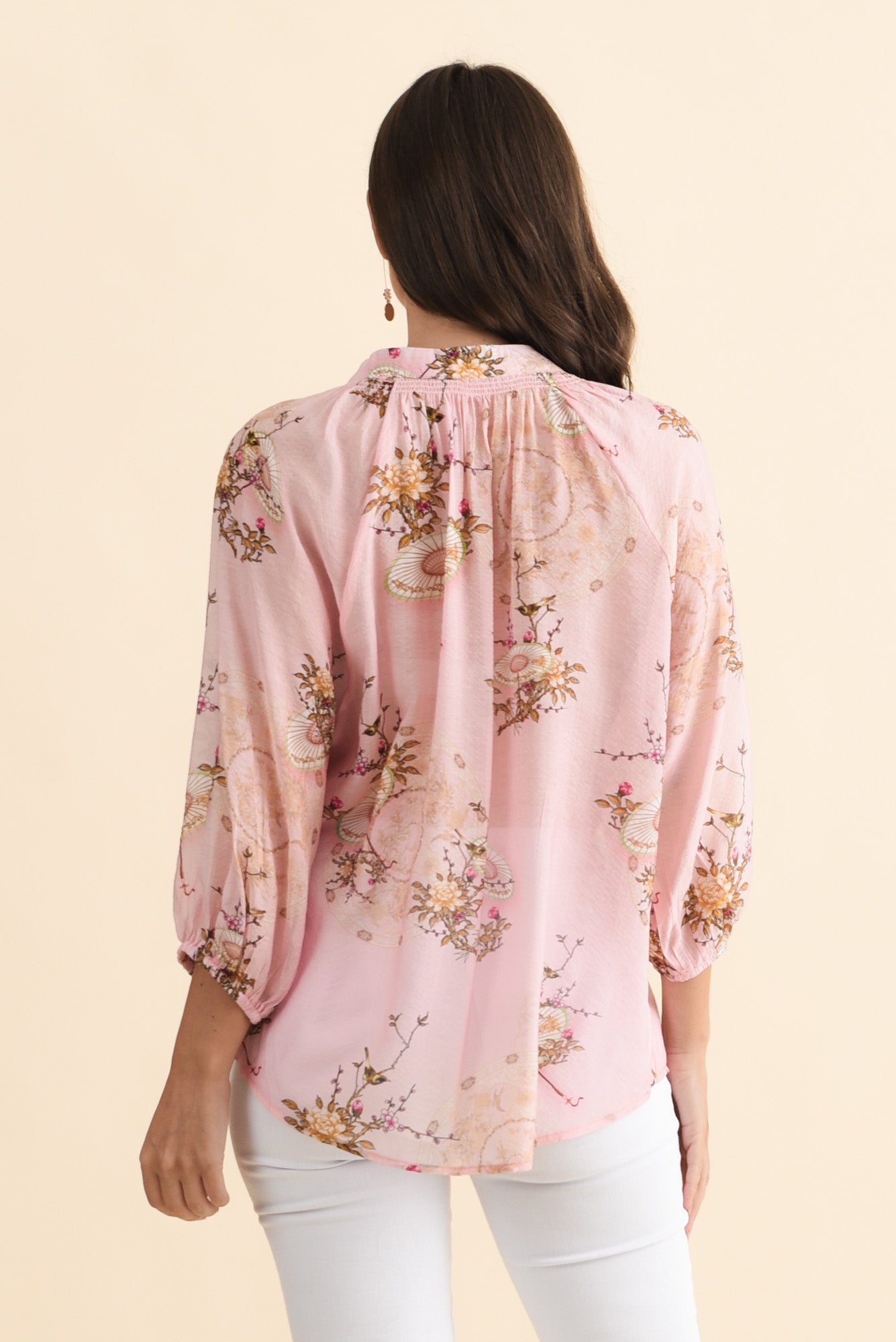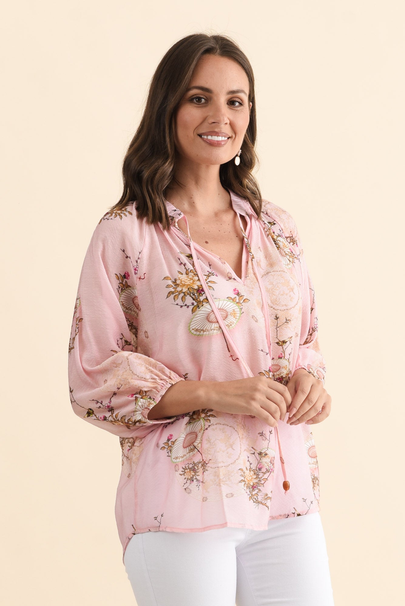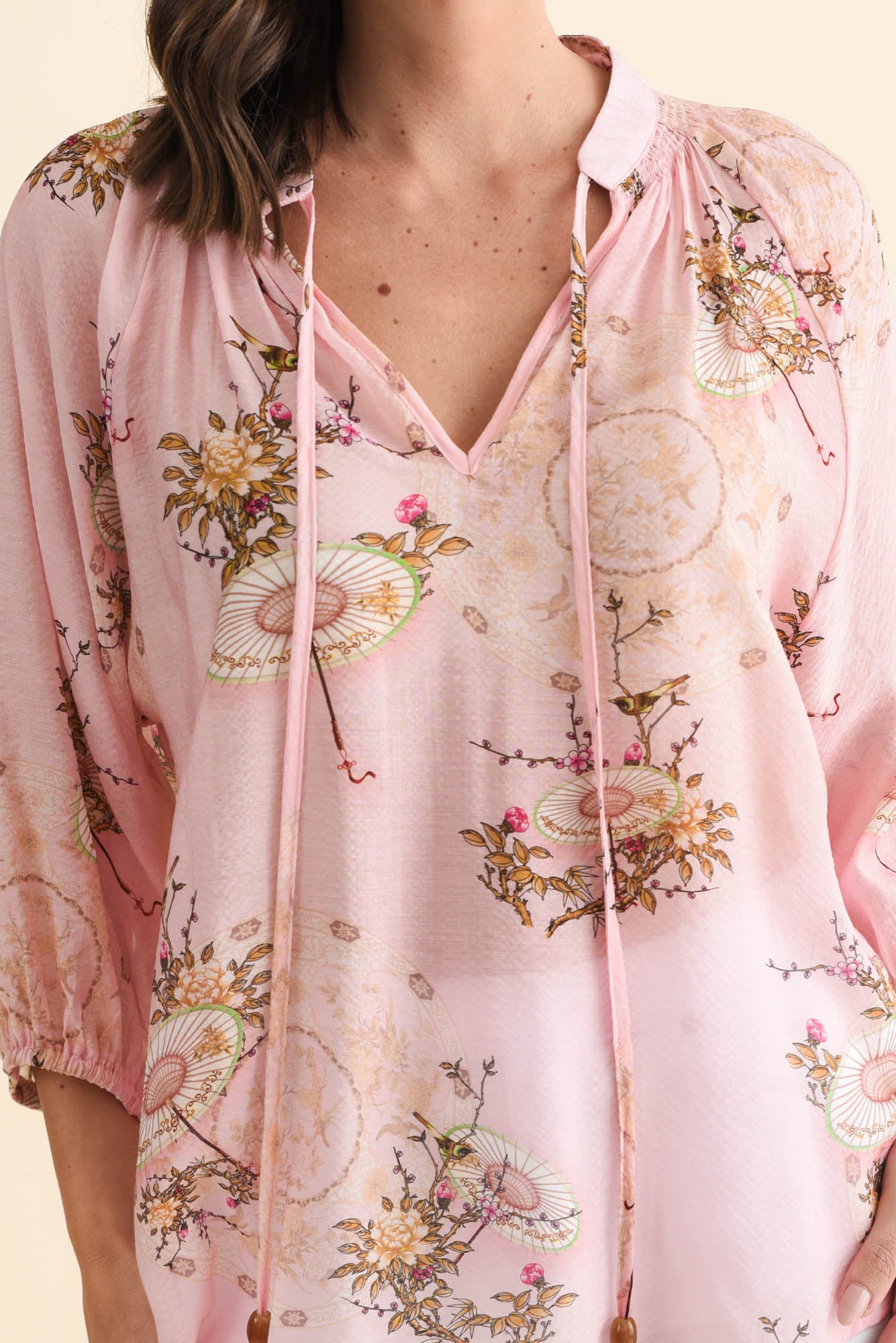 Joelle Pink Garden Cotton Tie Top