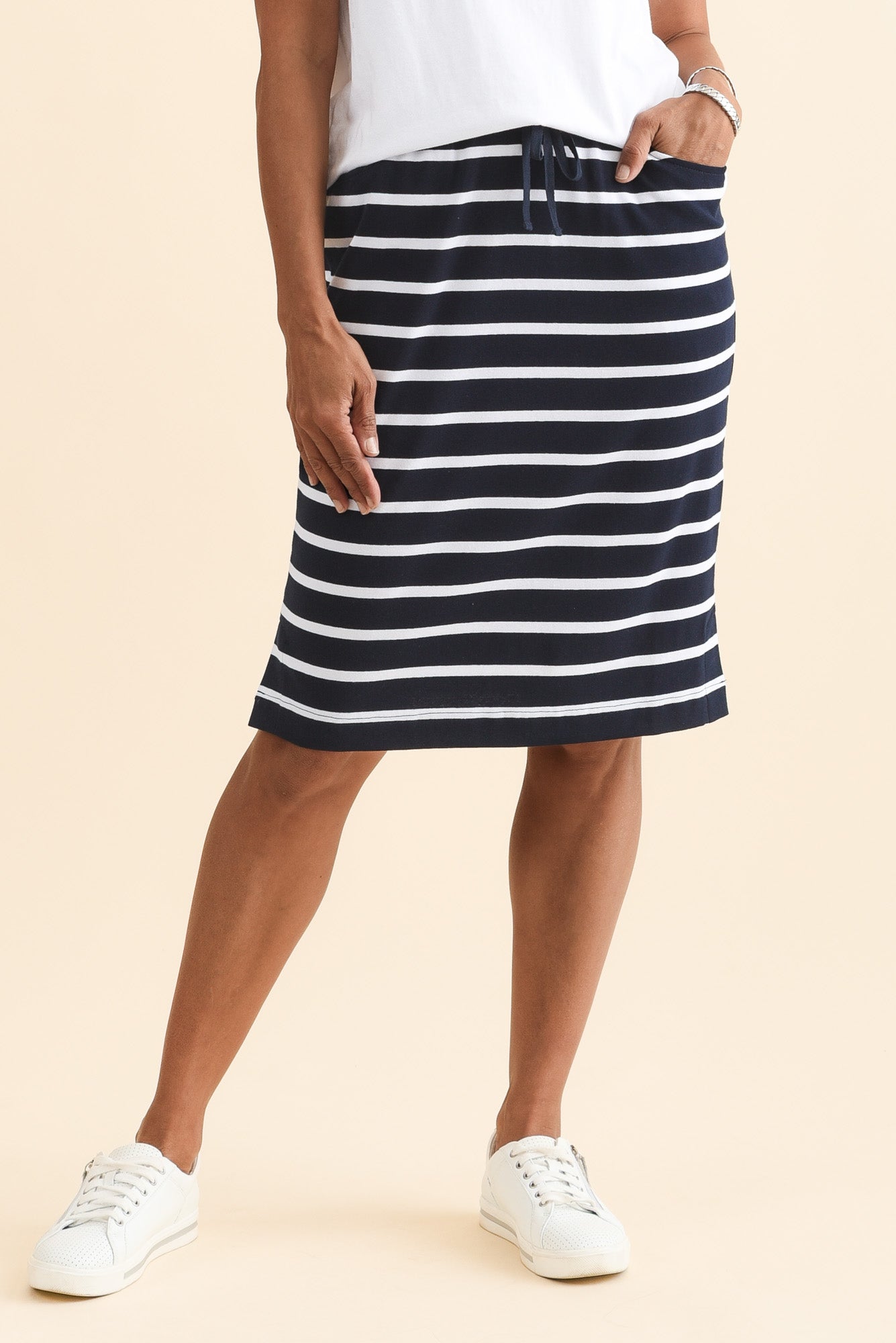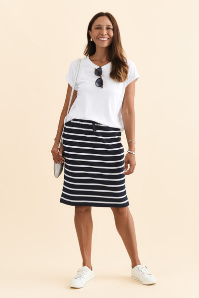 Johnnie Navy Stripe Cotton Drawstring Skirt