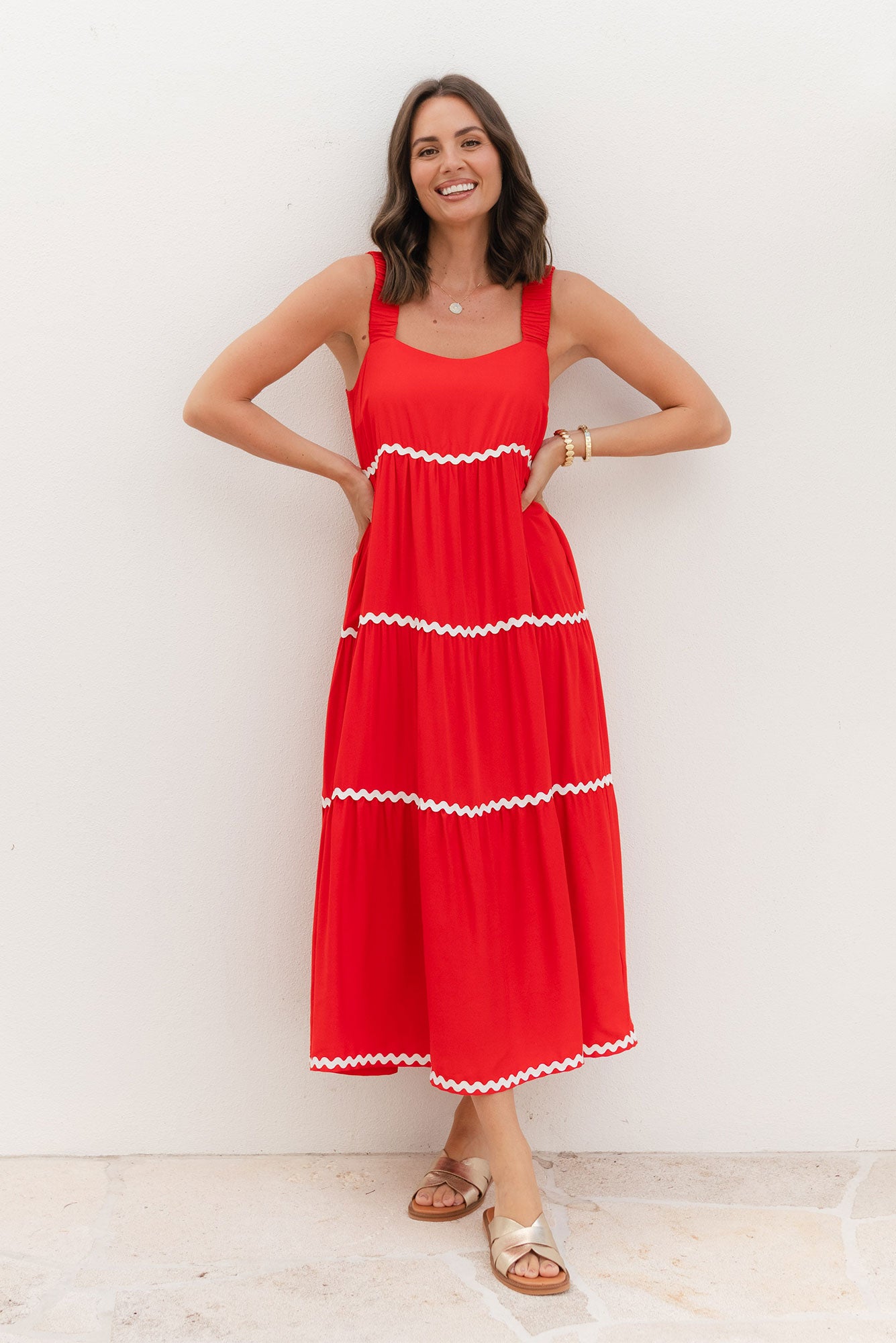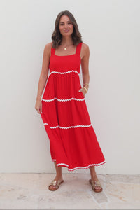Josie Red Contrast Tier Dress