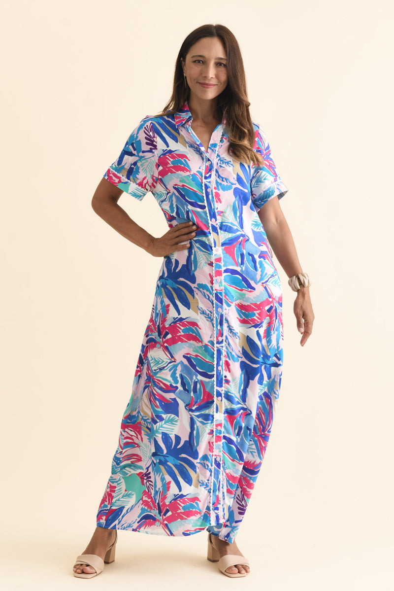 JOSSALYN INDIGO LEAF TIE DRESS