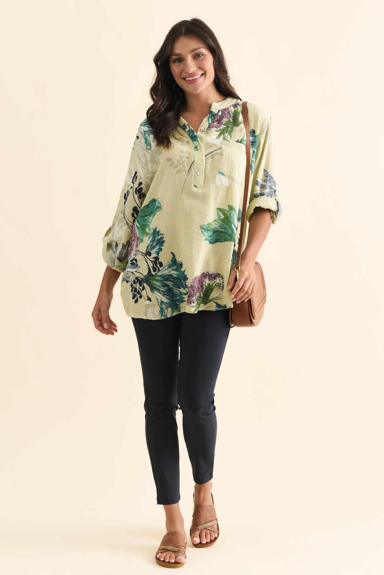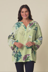 JULIET GREEN FLORAL COTTON LINEN TOP