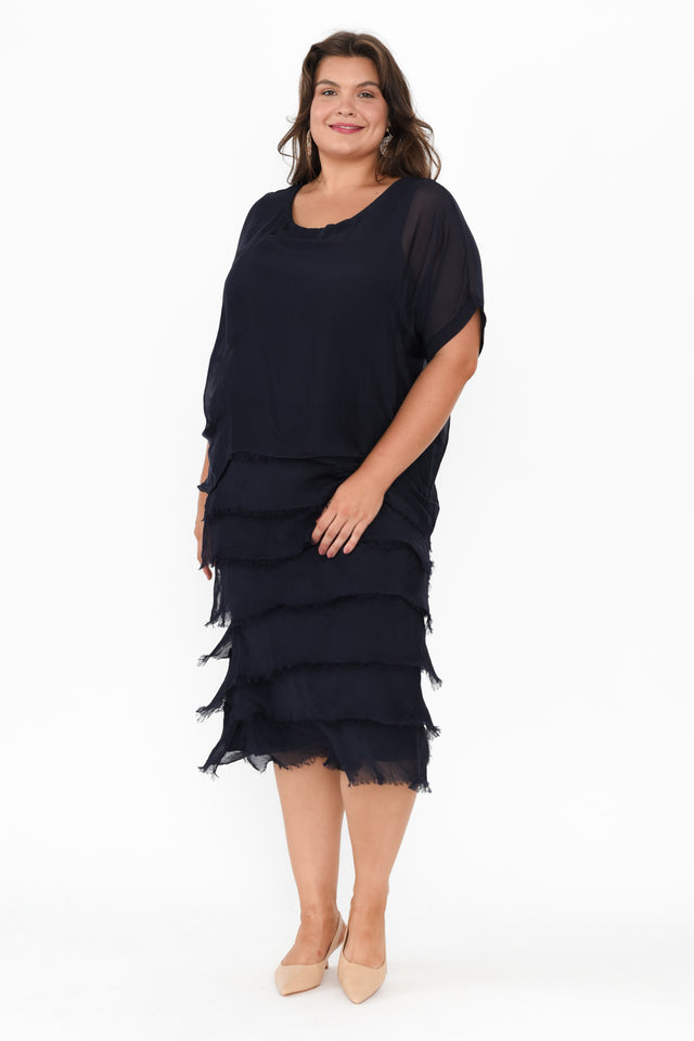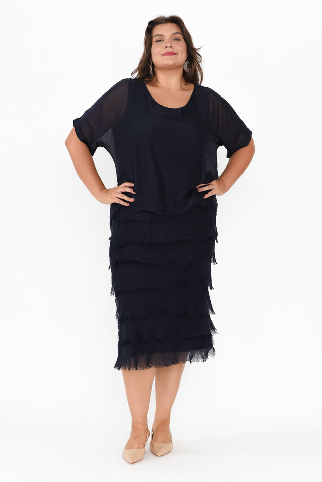 Katerina Navy Silk Overlay Maxi Dress