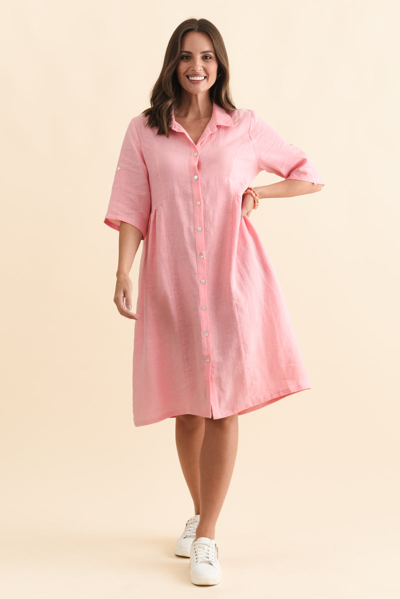 Katy Pink Linen Pocket Dress