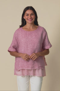 KAYLA PINK LINEN LAYERED TOP