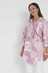 KERRA PINK BOTANICAL LINEN SHIRT